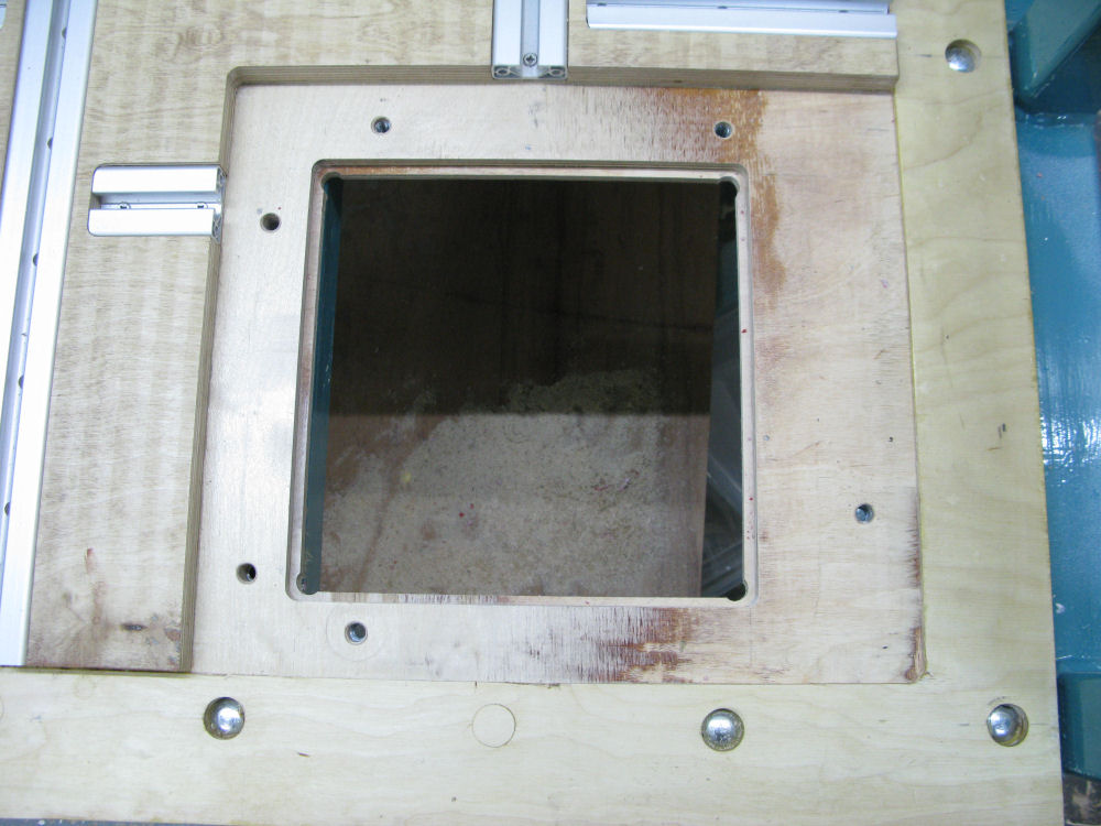 1. cut hole in table to leave approximately 200mm square hole for workpiece.