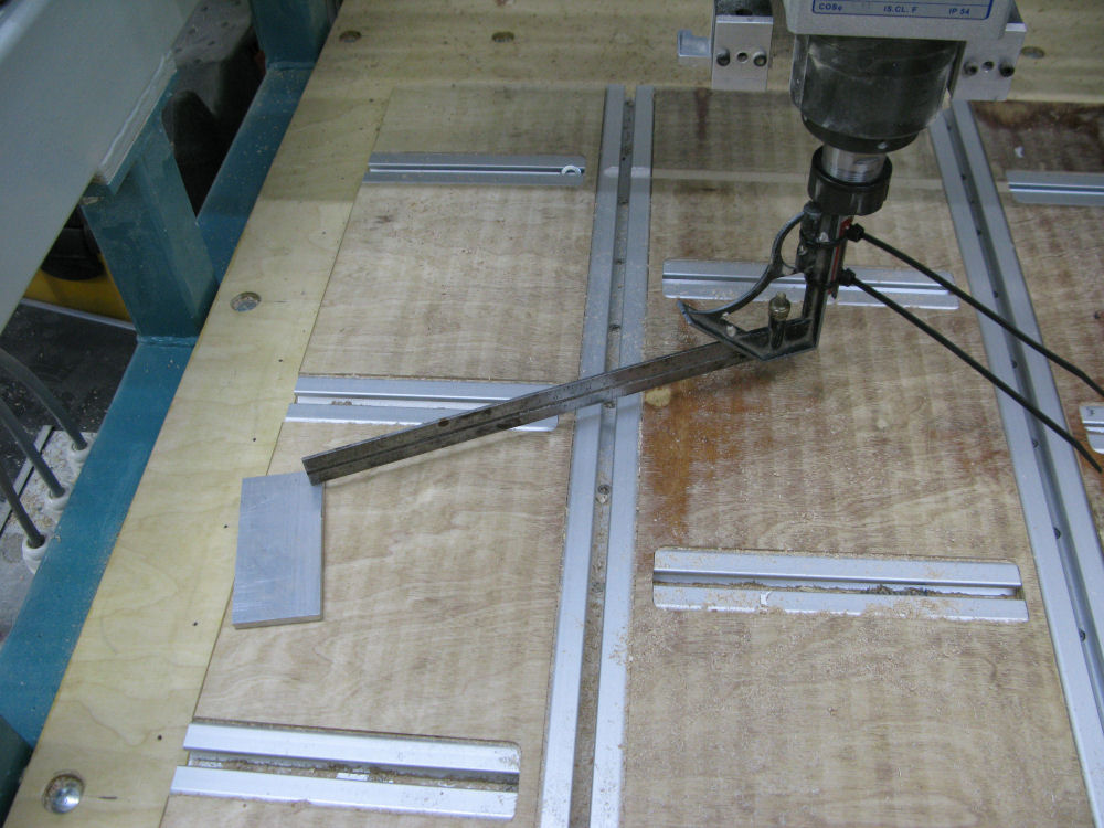 6. Check machine to ensure spindle is vertical in all planes. I attached an engineering square to a 1/2" cutter and used a piece of 6mm plate as a feeler gauge. Checked all round 360 deg. circle.