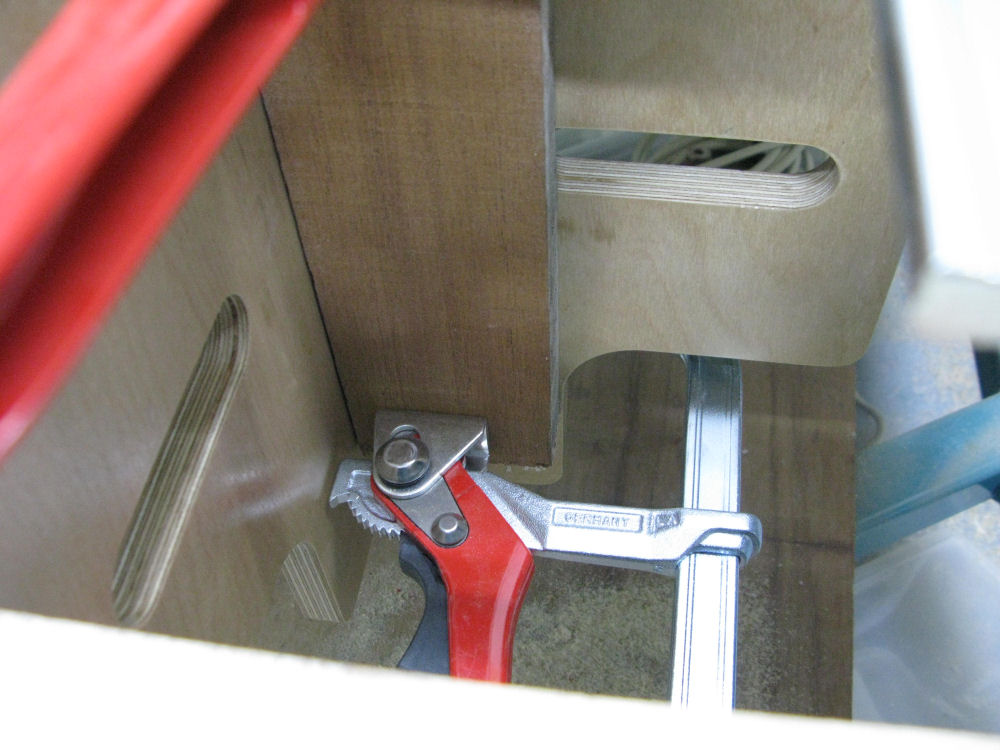 8.Cut out and attach workpiece support cheeks. Cutaways allow 100mm throat clamps to be used for both narrow and wide workpieces. Three clamping positions are available and workpiece can be positioned in X direction or Y direction.