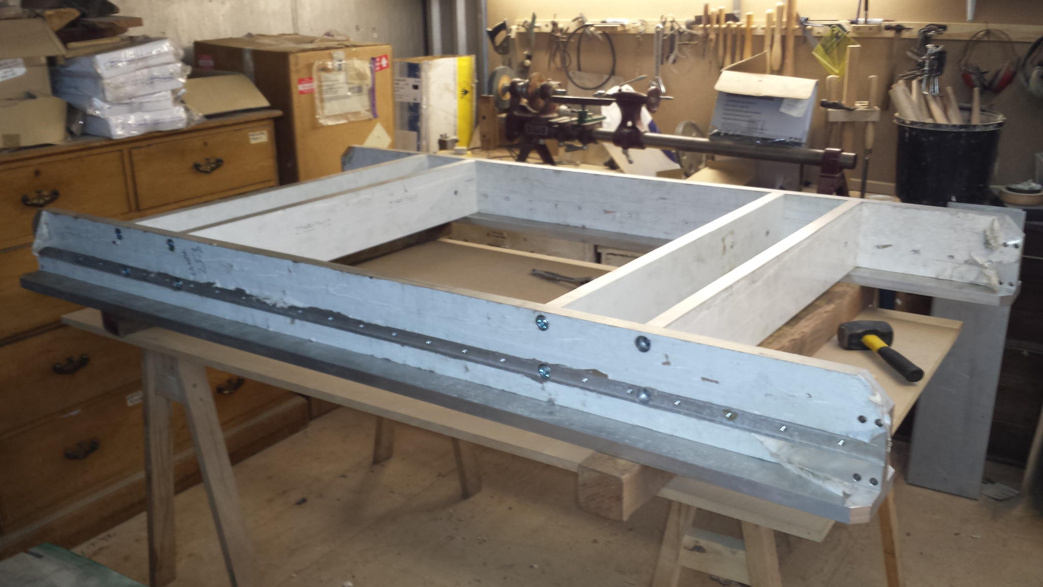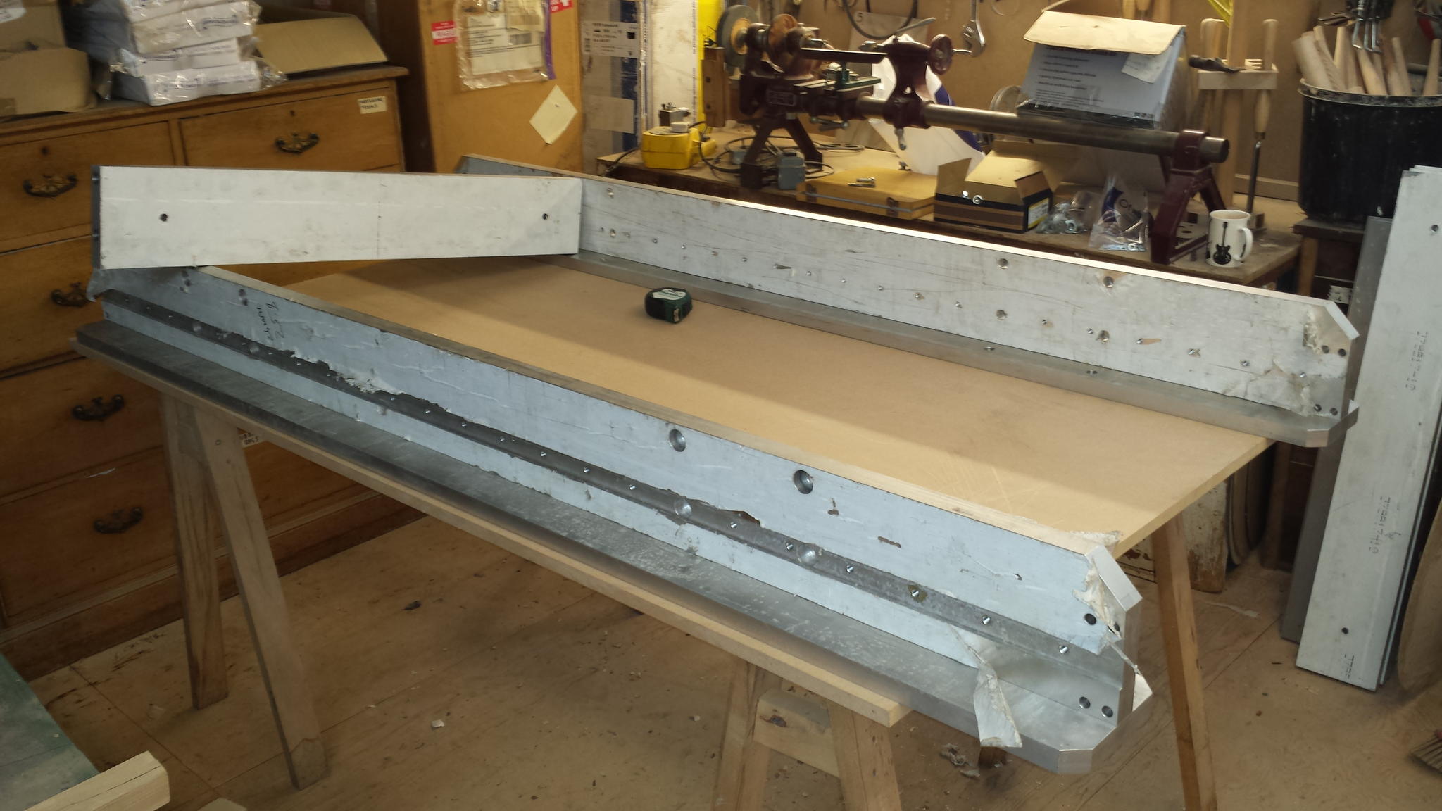test assembly... I now know the approximate size is 2m x 1.1m between rails, and first problem... one of the cross rails is drilled about 2mm out, still thinking on how to best fix that, any suggestions gratefully recieved