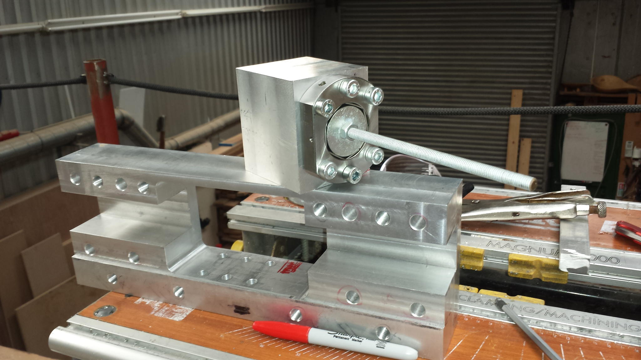 bit more progress, x axis is hopefully "finished" ie only needs minor changes like limit switches and guarding fitting.... and base frame is made, so I can start a trial assembly soon
