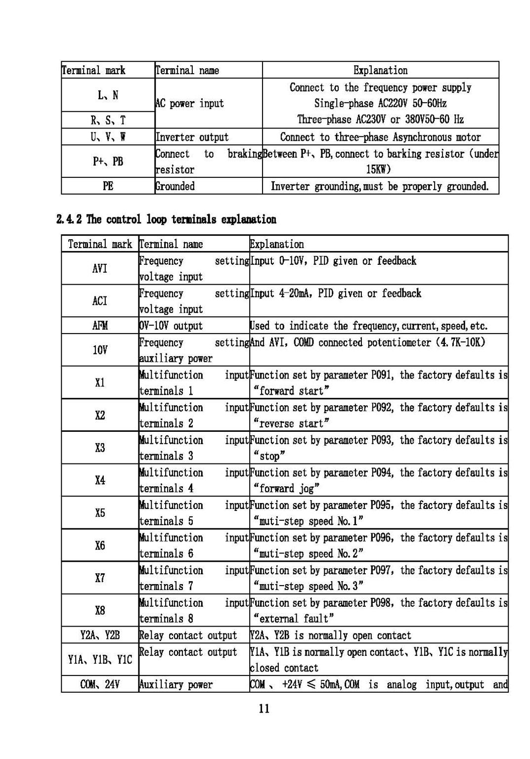 Here is the full manual for the VFD: