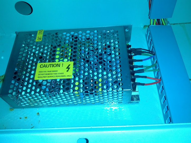 The machine has a air pump, a water pump and very little else. The machine when powered up it's exhaust fan runs and the x and y axis travel to the top left hand corner and the red laser dot is on at this time. As the laser tube is apparently broken I have not turned on the laser power or test fired. My Z axis bed also motors up and down by a toggle switch selection inside the working area.