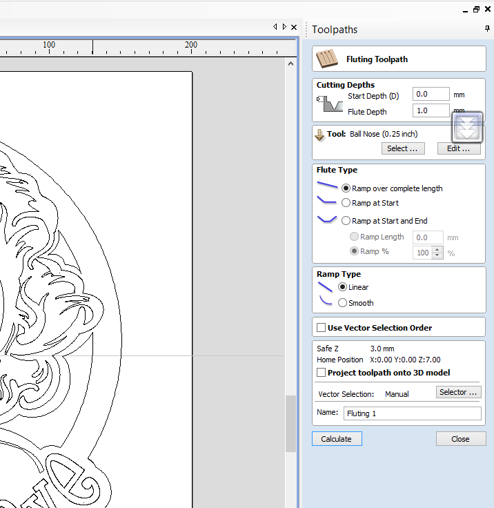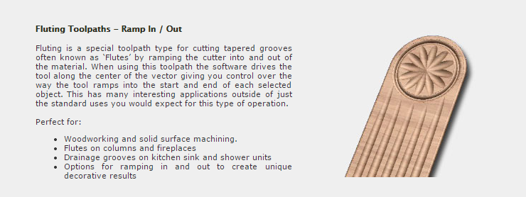 Yeah, I have Cut3D - another excellent piece of software from Vectric - but the way that it generates its cut files isn't exactly practical (and very long-winded) for simply adding a couple of fluted lines to a face.