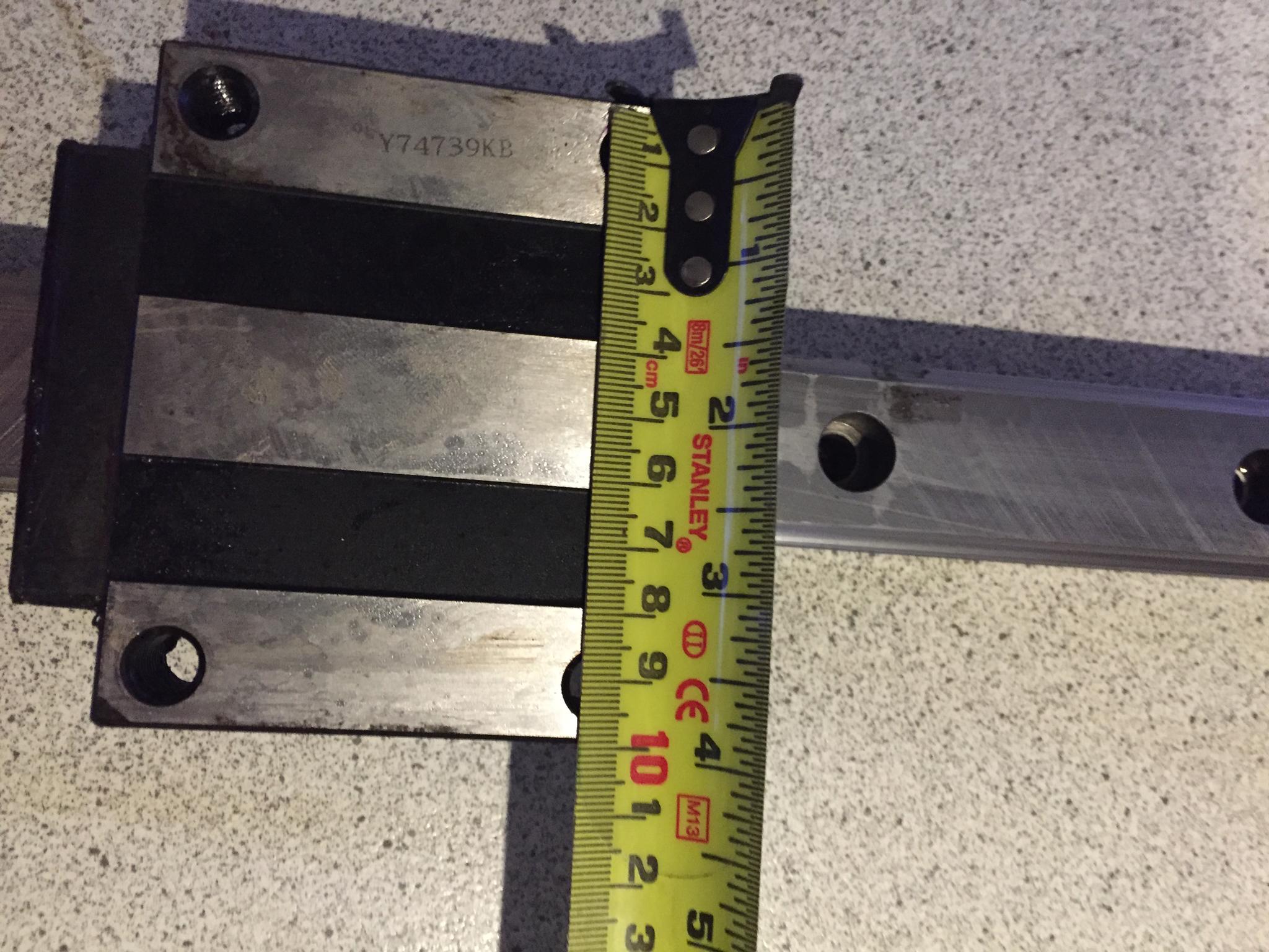 The linear rails are 33mm wide and the shortest is 109cm the blocks are 10x10cm with from memory m10 mounting holes. They were certainly well greased and the machine was spot on with no noise or rapids. I have 3 pairs of rails the one shown in the picture is the y axis which is the same as the z axis in terms of length. I also have the X axis but these are a fair bit longer around 1.5m long.