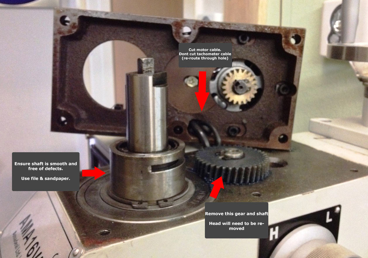 This belt drive is designed to be simple & compact, while retaining the quill drive function. These machines are well known for the problematic gear boxes & motors. The BF16 style machine is well suited to small, high RPM cutting. This belt drive will make your machine quieter.