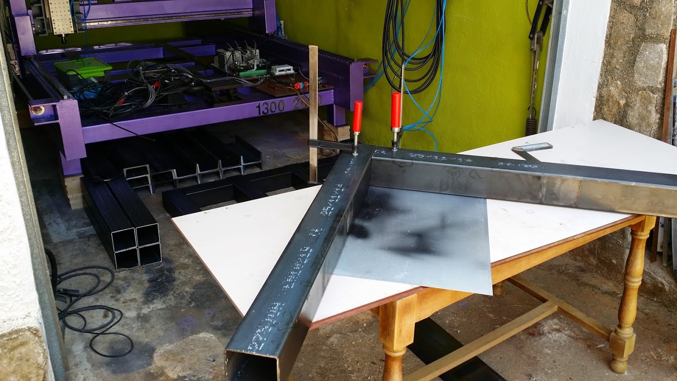 Made from UPN100 /top and 100x100x3 rest . There will be some small extras not seen . All boxes/???/ shown are IKEA metal / 30euros each /6 drawers. I have one, its great. One by one will add them in the future.