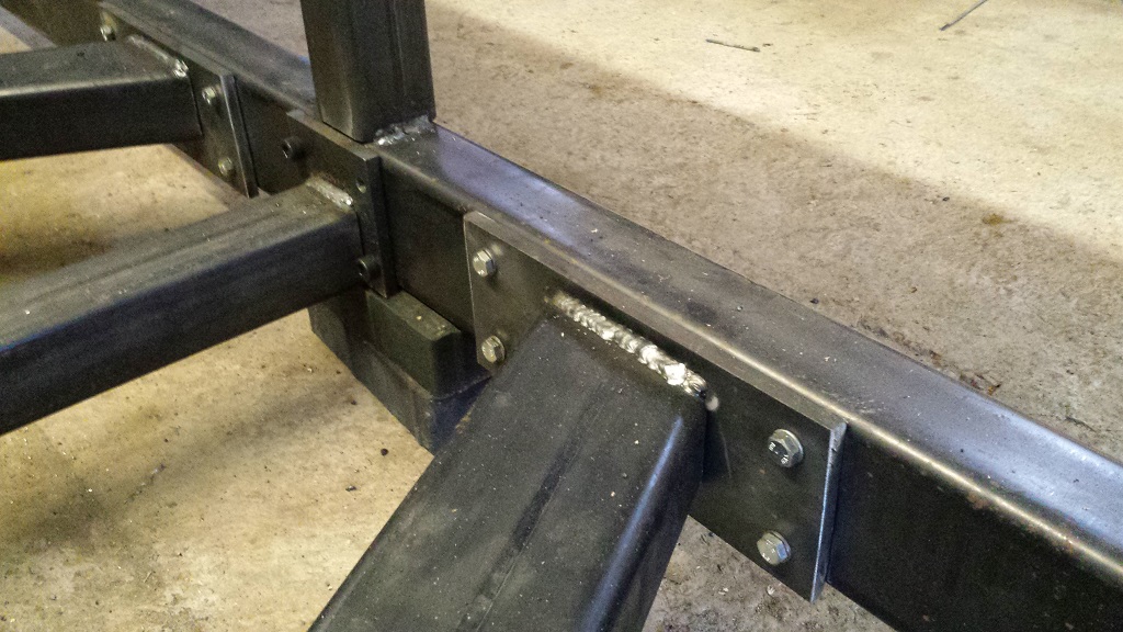 thanks guys, i will be using butt plates and as for the strange overlapping its because there was beams going across the bottom too but trying to keep cost down while keeping a strong frame, i have changed the frame now using 90x90 profiles 5mm thick. here is the frame.