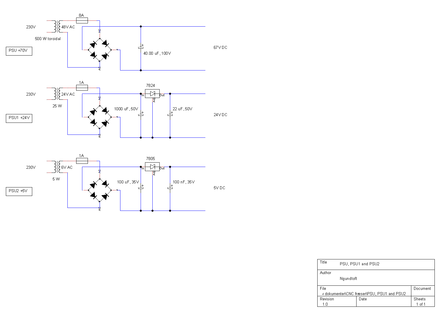 - PSU Linear, 70V, 9A. 500W toroidal transformer (rectifier, capacitors, softstart)