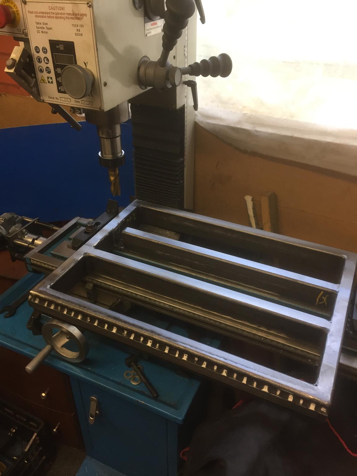 Its actually 2.5mm thick, still thin, table itself is rigid enough. Gantry will have 50x5 to joint both legs, so should be no flex. In addition I use 5mm base for mounting all gantry blocks THK15. Will upload some photos after welding. Gantry is complicated as has to be adjusted to match the distance between rails on the bad. I will machine/plane X bases before welding them to top part (X mounting profiles). After all will be final machine to keep straight angle between table and Y plane and between base for blocks and Y plane - will do pictures as is confusing enough:)