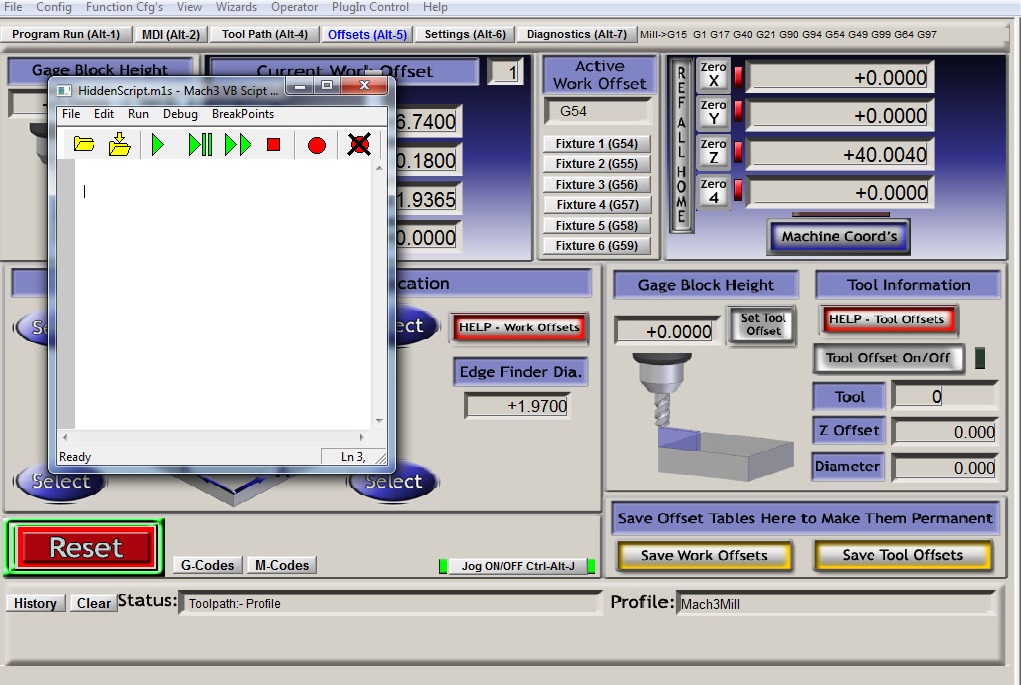 Some of the buttons in Mach3, although shown on the screens do not do anything when pressed, this is because they have no code or script assigned to them.(Great idea that)