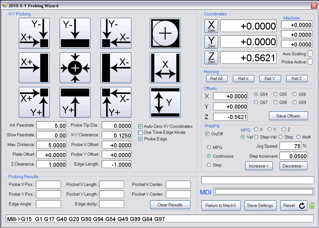This is using standard Mach3 Mill screen set with added screens for the probes