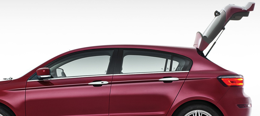 Have a look at an Estate car boot lid (Station Wagon tailgate?). You will notice that the struts are fixed to the car body almost at the same height as the hinges, and when closed sit in the gap between the tailgate and D pillar at an almost parallel angle to the door.