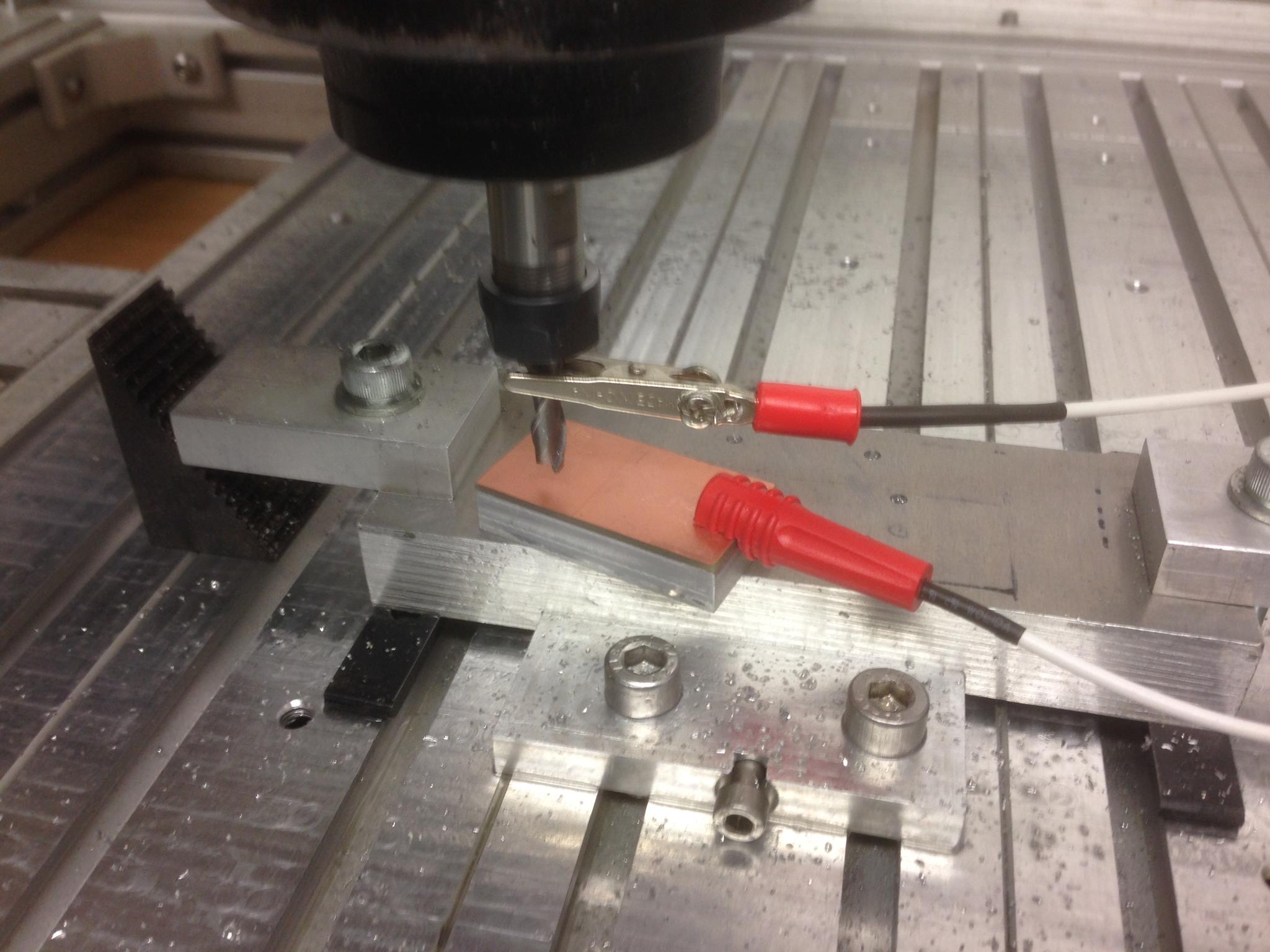 Here is it in use to set the Z height from the surface. I use mach3 screenset 2010 and tell the software that the block is 10mm thick. Then in the probing function hit one button and it does the probing and sets it all automatically.