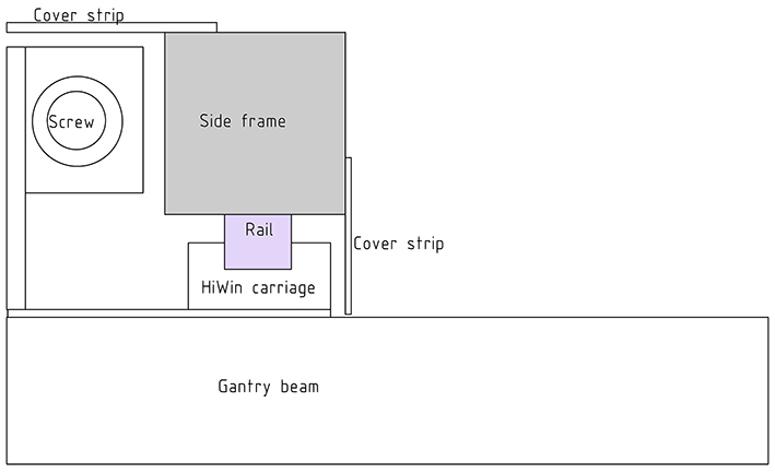 I wonder if mounting the rails on the underside of the side frame would help dust from settling onto the rails, then have the screw mounted below the rails/gantry/carriage? On the inside edge you can then have a bit plate hanging straight down to stop dust coming of the cutting area, and arrange a couple brush strips on the outside to minimise dust blowing around and in.Avoiding the rubbish customer service from AluminiumWarehouse since July '13.