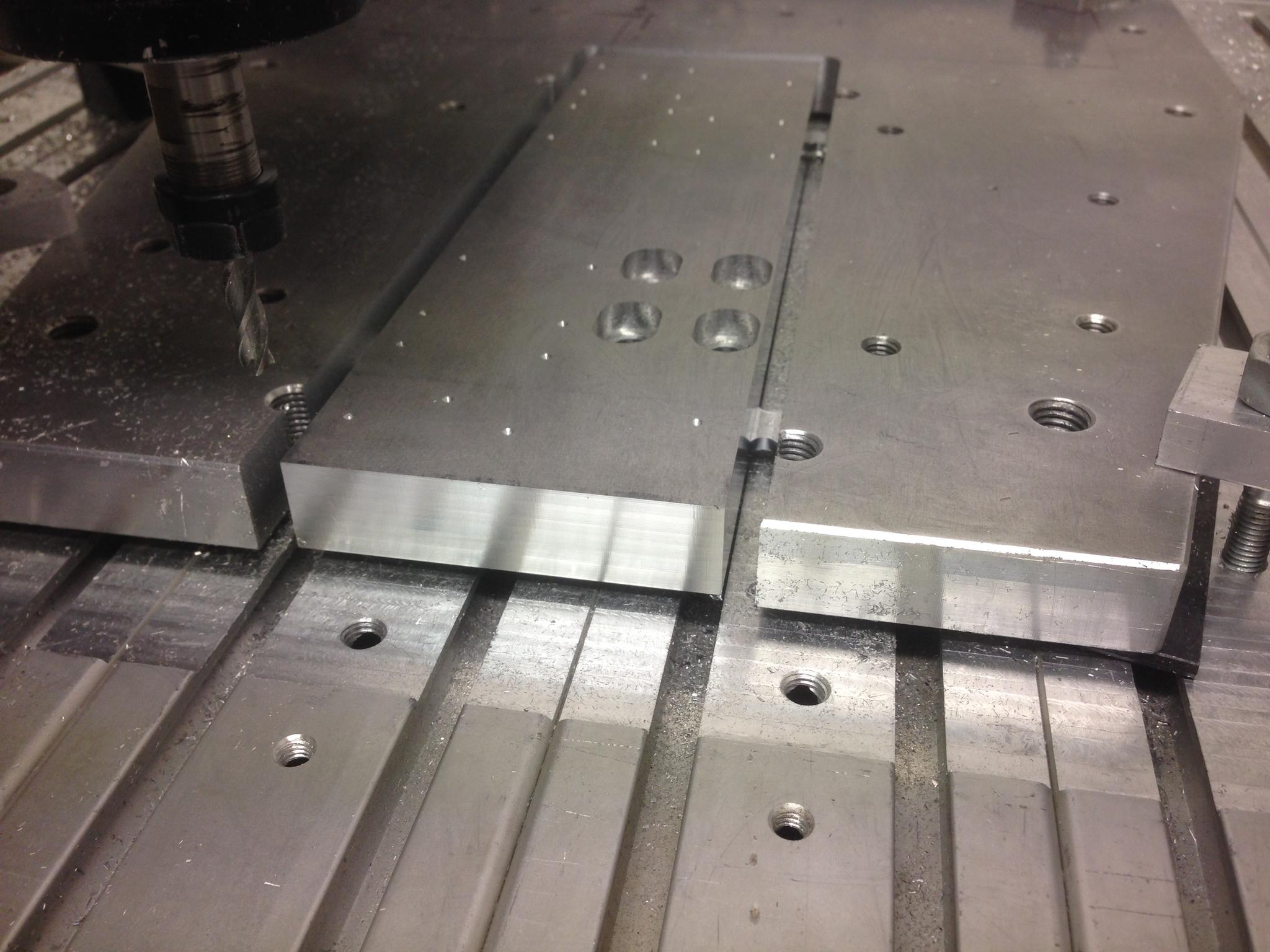 Here is the start of the one for the other end. I had to line this one up using a DTI and get it very accurate to avoid hitting the holes in the donor plate I'm using. I've cut the slotted holes, next up will be spotting and profile: