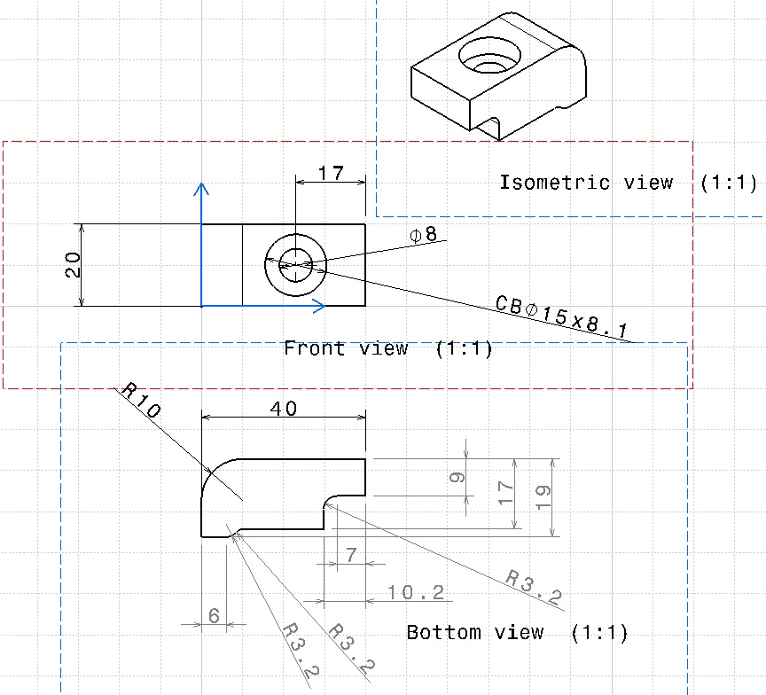 The DRO I fitted to the pillar drill works really well for CBs. Although the depth is not critical, it looks nice if they are about the same height as each other. These are the CBs for the M6 bolts, drilled to a depth of 10mm as the thread needs to stick out to get good engagement:
