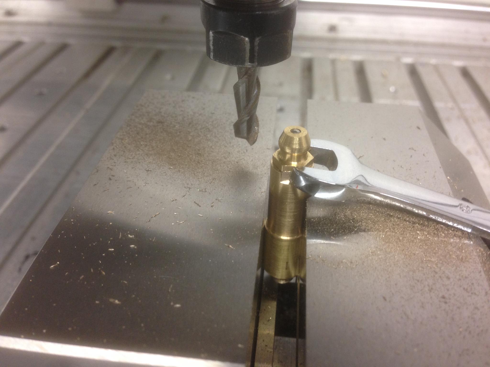 Then machined 2 flats (8mm AF) which were aligned to the flats on the grease nipple. This is to allow the tubes be inserted after the bearings are fitted, making it easy to fit/remove the Z axis - something which might happen quite a lot when setting the machine up: