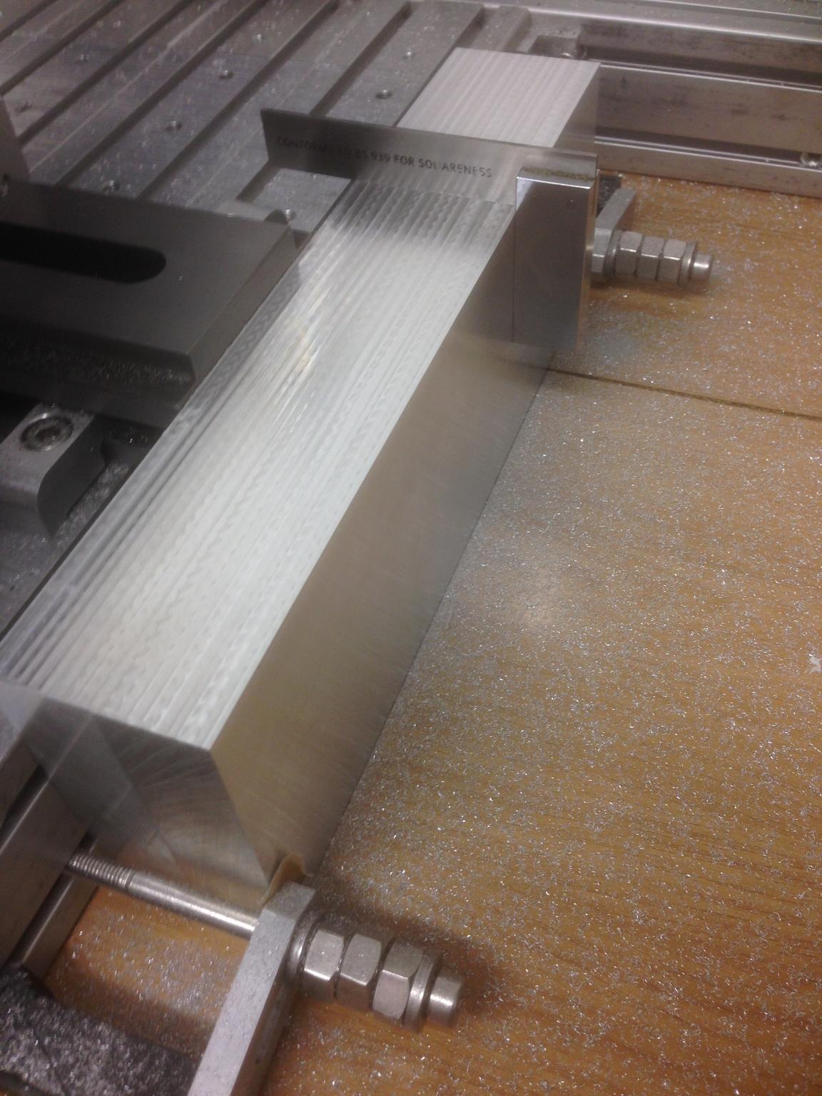 I was pretty relieved to get to this point with both edges parallel and part to size (96 mm). However what I didn't know at this point was that this new top surface was actually on an angle and it was more like 95.7 mm (!) on the other side. Don't know if the fixture slipped during machining or what. But it is out by way too much for the linear rails.