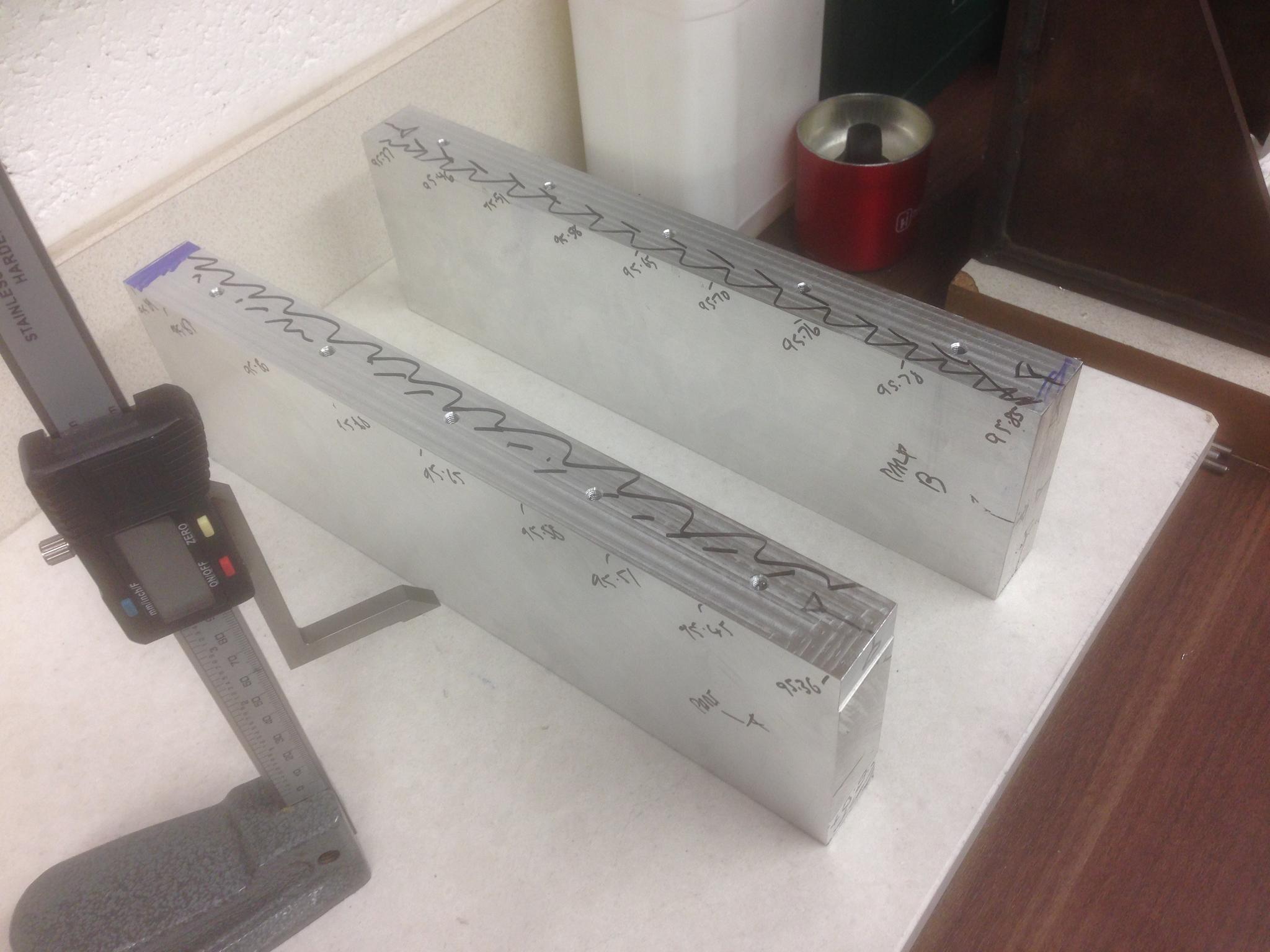 OK here are the detailed measurements showing how far off 96mm width the parts were (!). I think they slipped / tipped in the fixture, which I couldn't tell as I couldn't see the ref surface they were sitting on during the machining.