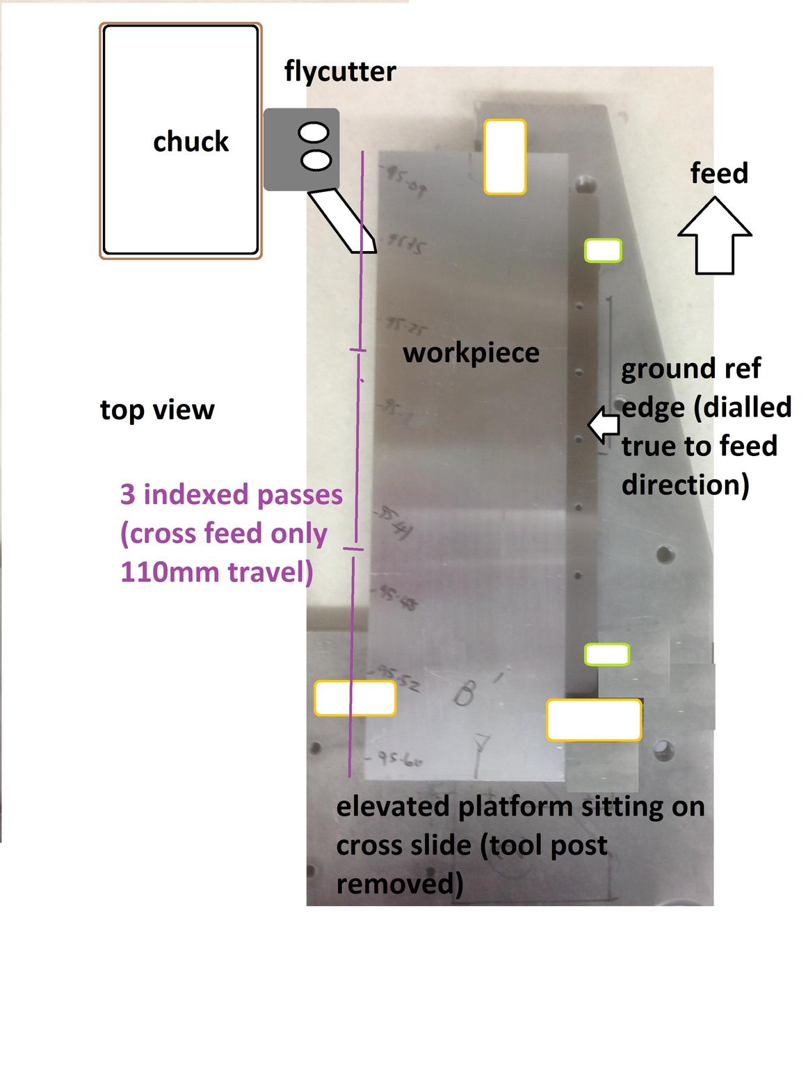 Only problem is that the cross slide had about 110mm travel and the edge is 310mm long so I will need to index it along the ground reference edge 3 times. Will this give an accurate long edge or will it give an edge with 3 facets? I will find out !