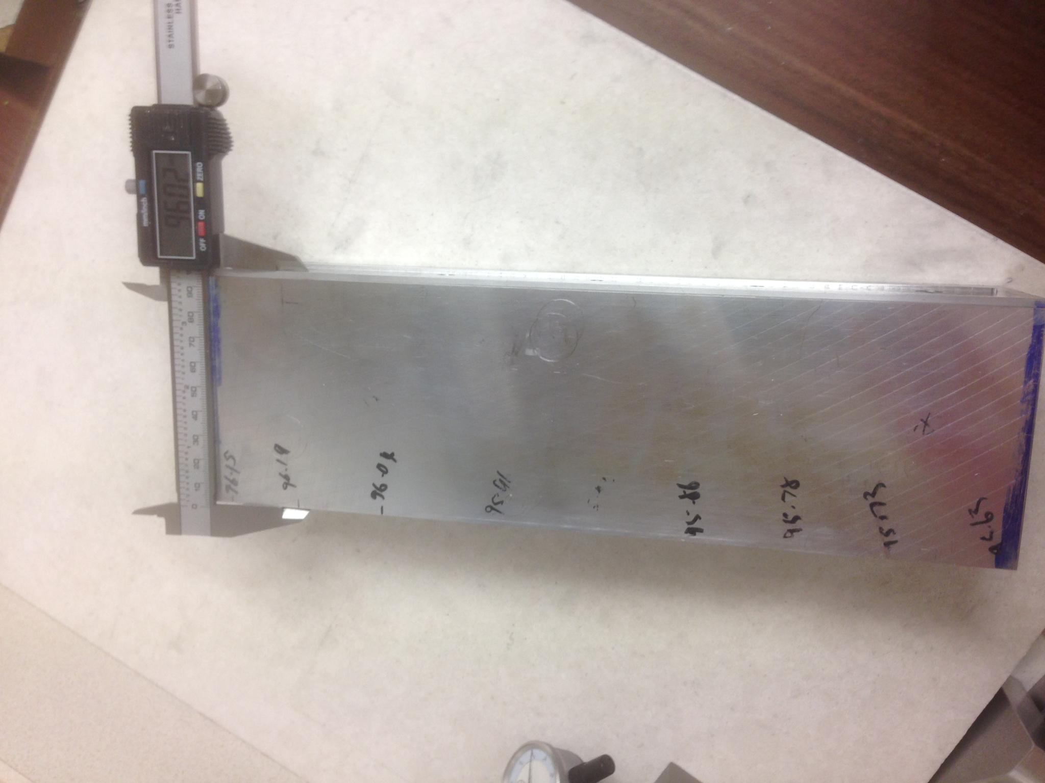 Skimmed it all down to 96 mm trying to get within 96.00 - 96.05 everywhere. I used the height gauge to check progress and wrote the heights on the part. Here is it getting close.