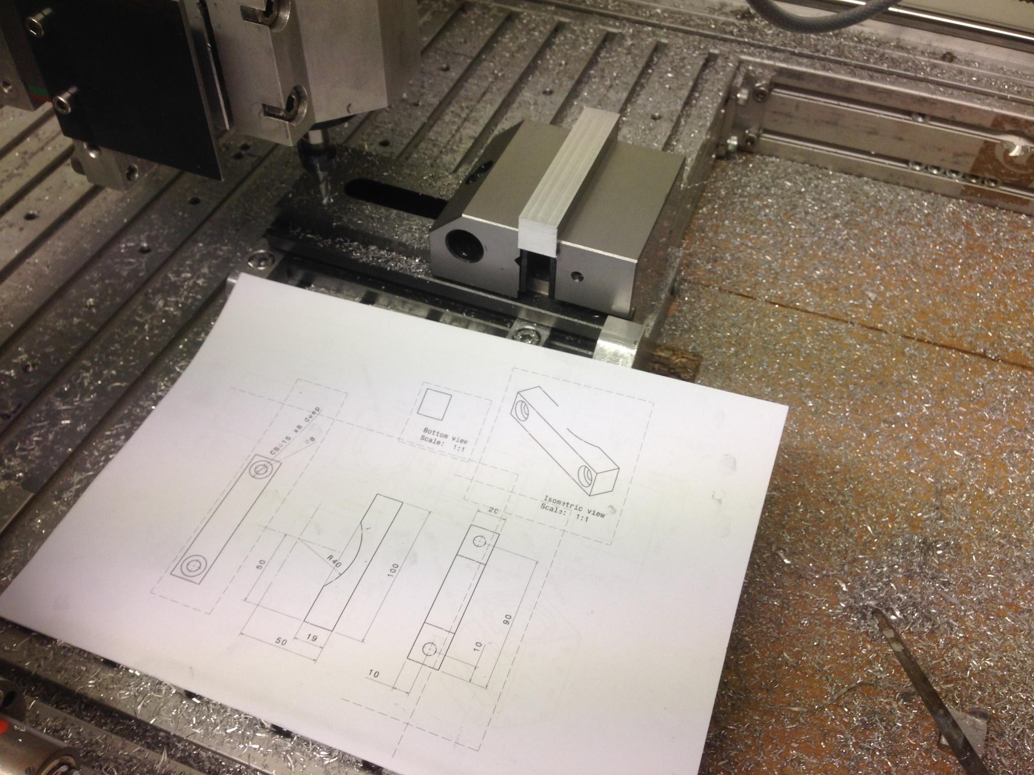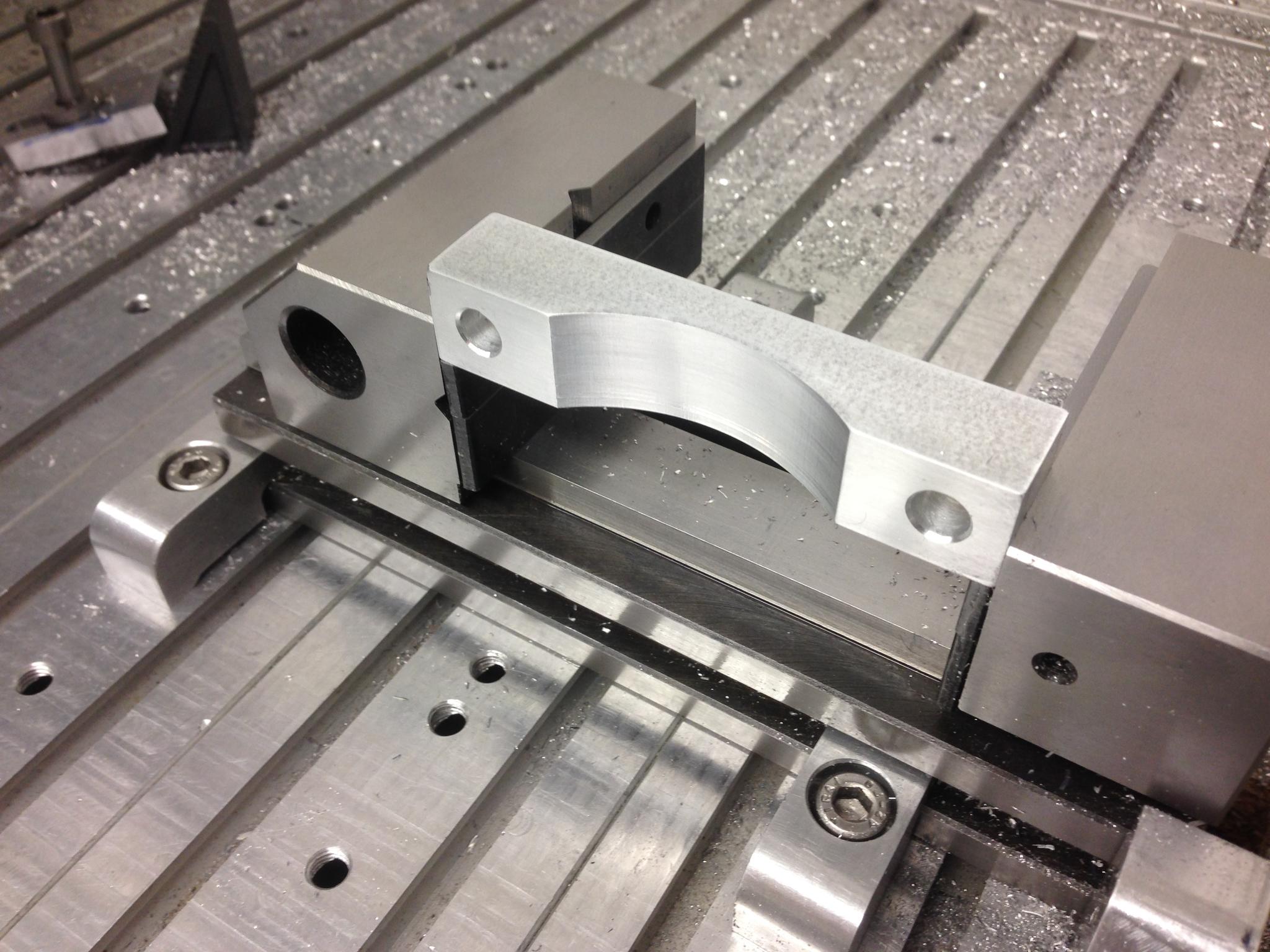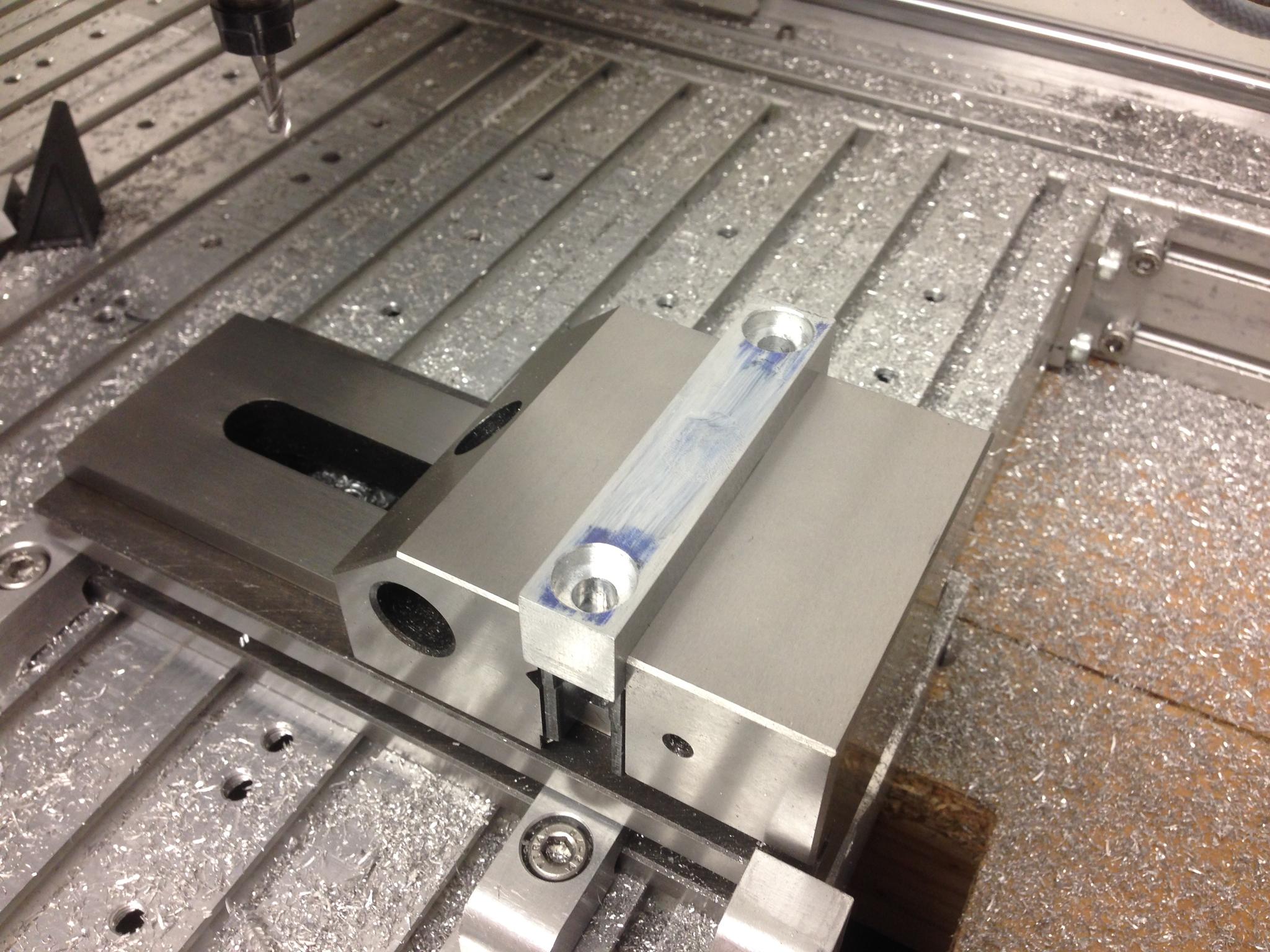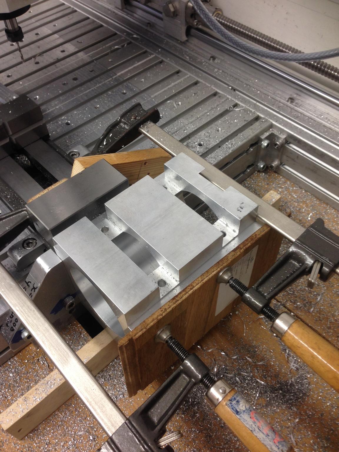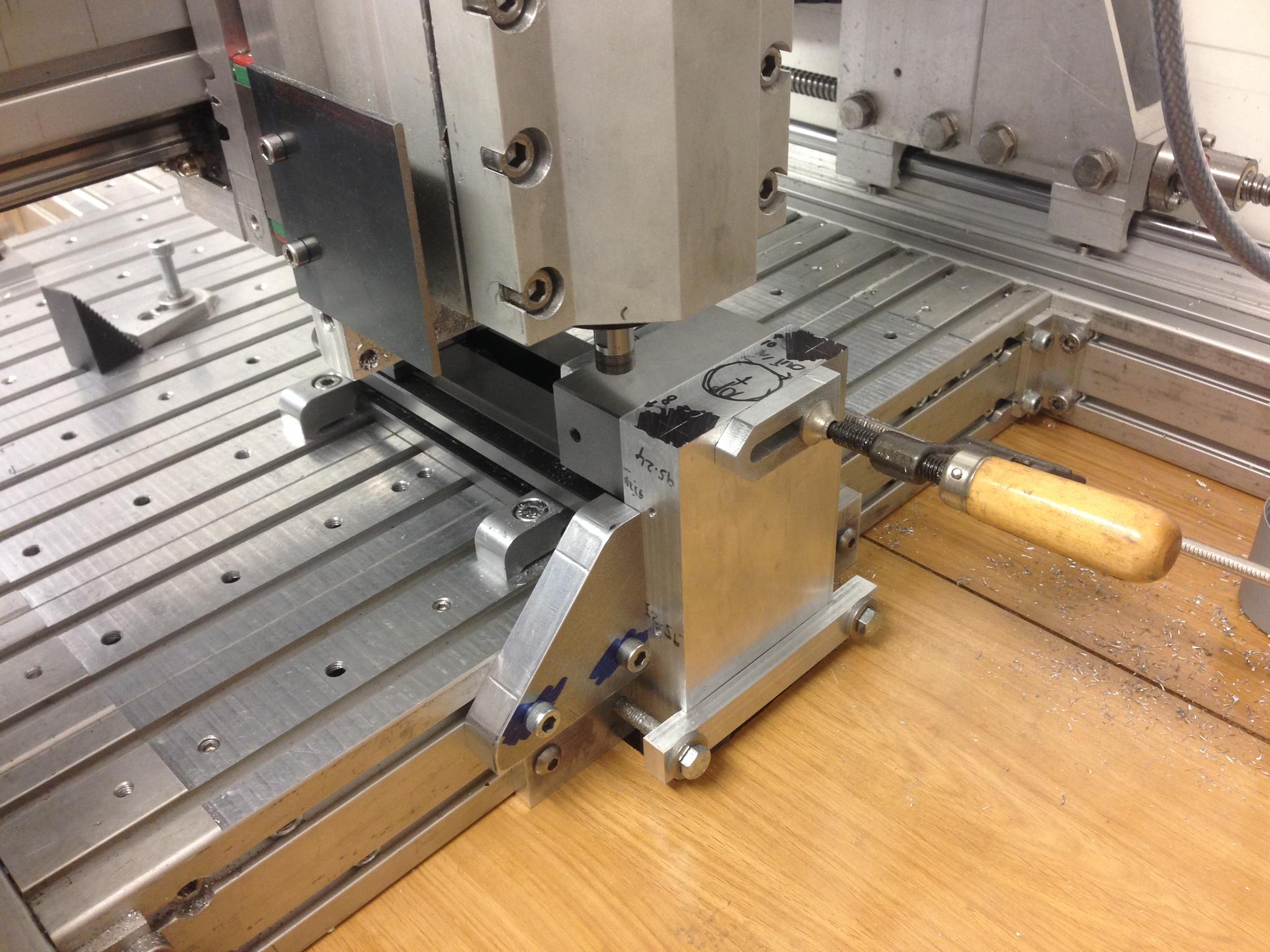 Once I sort out the edge machining problem, there are some straightforward holes / counterbores to come, then I need to figure out how to machine some detailed features onto the ends. I think I will cut a hole in the table the machine sits on and poke most of it through into the draw space underneath.