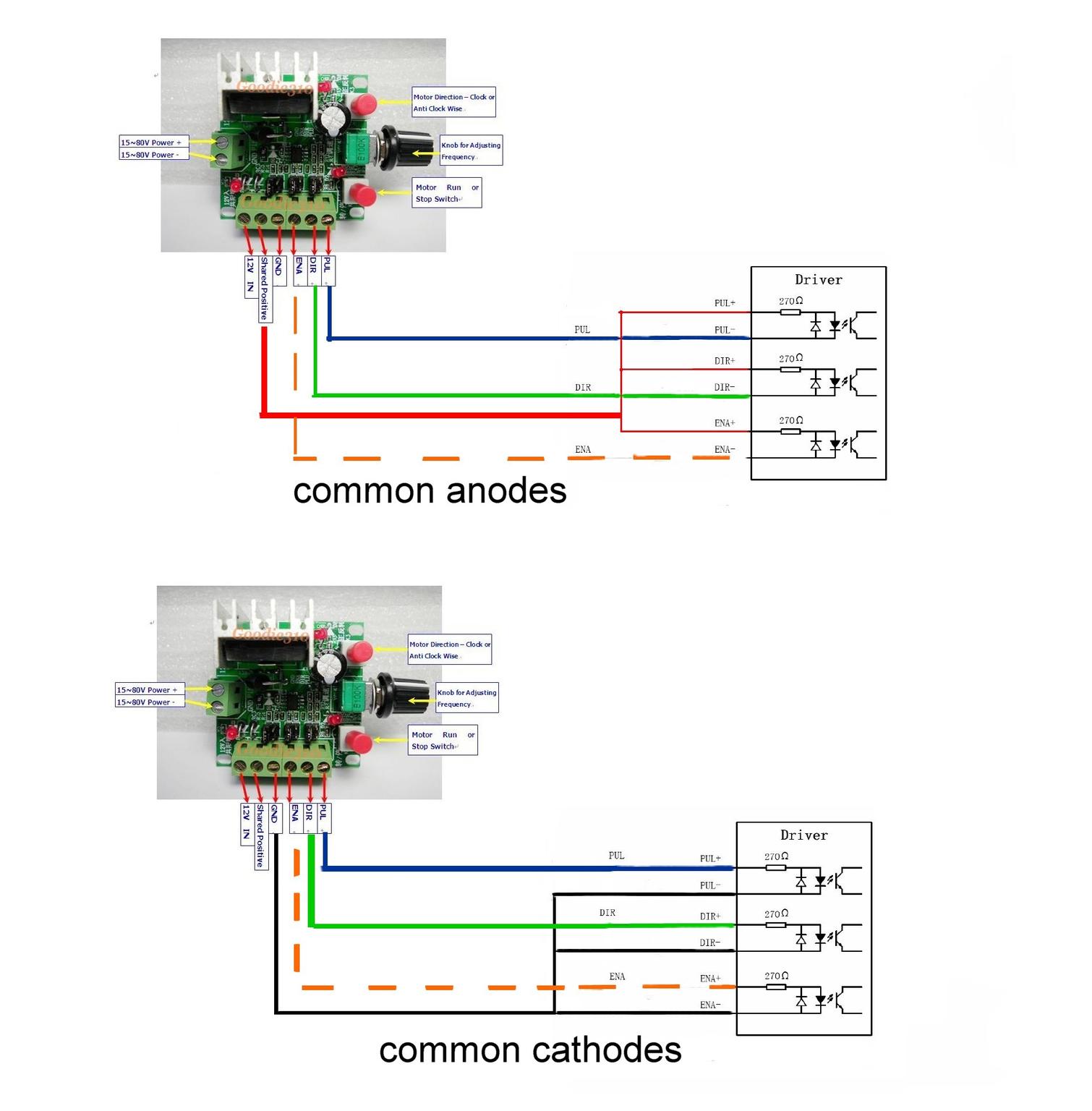 Without common cathode I can only run one direction (like having only PUL+ and (-)cathode or PUL- and (+)anode two cables connected)