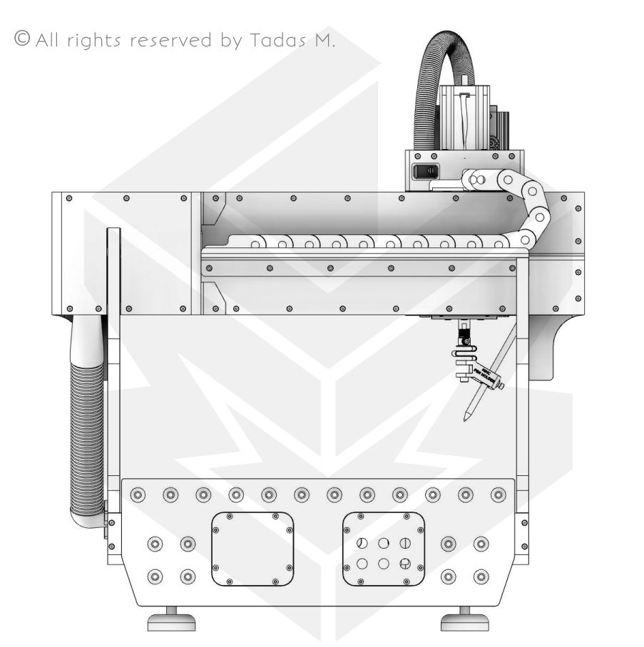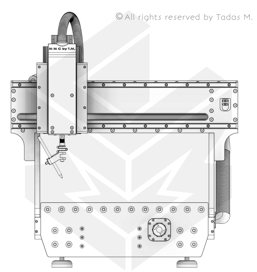 • Sacrificial MDF bed with 54 pcs of 6mm threaded points for material fixing