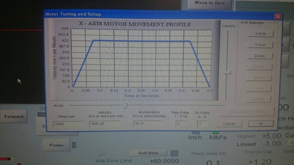 What values do you have in Motor tuning. :ie Steps Per, Velocity, Acceleration for each axis.?