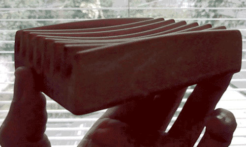 Heh - this isn't the first soap dish I've made and I doubt it'll be the last, but after seeing an abysmal design the other day (honestly, how can anyone make a soap-dish that doesn't work properly..?!) I thought I'd model one and cut it as a 3D object. The idea was that the ribs would droop in the middle so as to cradle the soap, whilst the troughs were to drop away at the edges to facilitate draining.