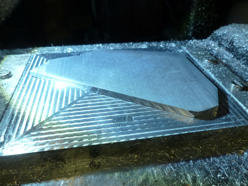 Hello all - hopefully the above images will give you an idea of what's going on: a 2 sided part and a holding jig. In the last two pics the second side has been machined and you can see how the part and the pockets don't quite match up and the holding pockets have had to be cut a bit bigger than you'd expect to accommodate for what I think is skew - but hey, there might be a bit of backlash in those Chinese screws so it could be a combo of both those things... (it's barely perceptible, but I get a click pushing on the table when the motors are energised and holding - and that ain't what I want).
