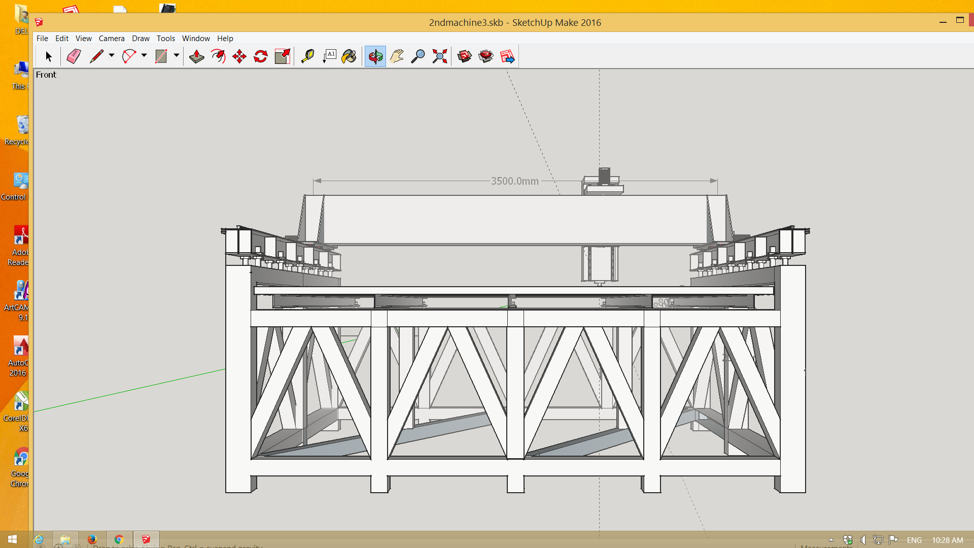 -Diagonal braces are more difficult to cut, almost impossible to weld and do less job than bigger box section in simple order-You have drawn 1.2 ton of a machine and i could achieve stronger machine for half the weight.