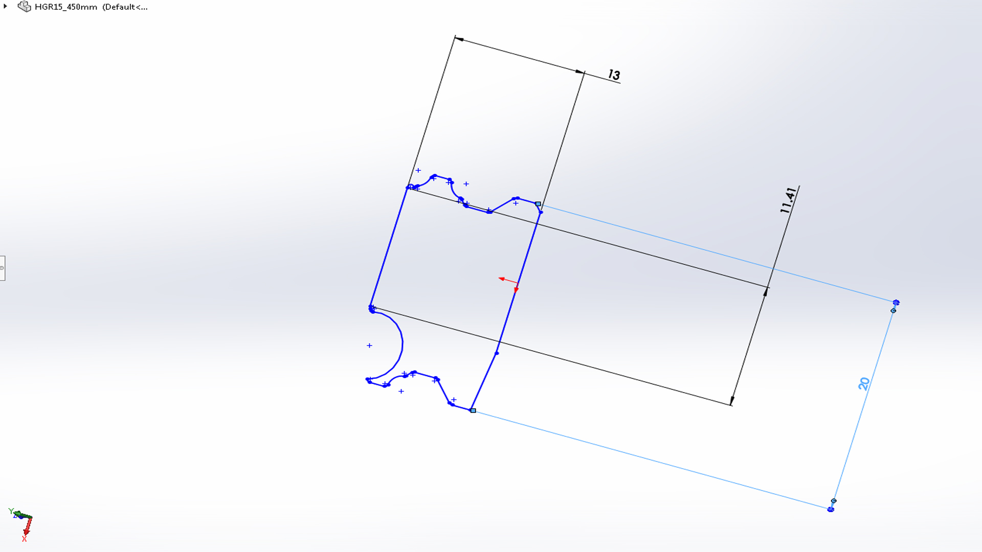 How do i edit this drawing so i can change the dimensions of an already made linear rail? basically i want to change it from a 15mm rail to a 20mm ect but when i change the dimensions it messes the drawing up shown in pic below.