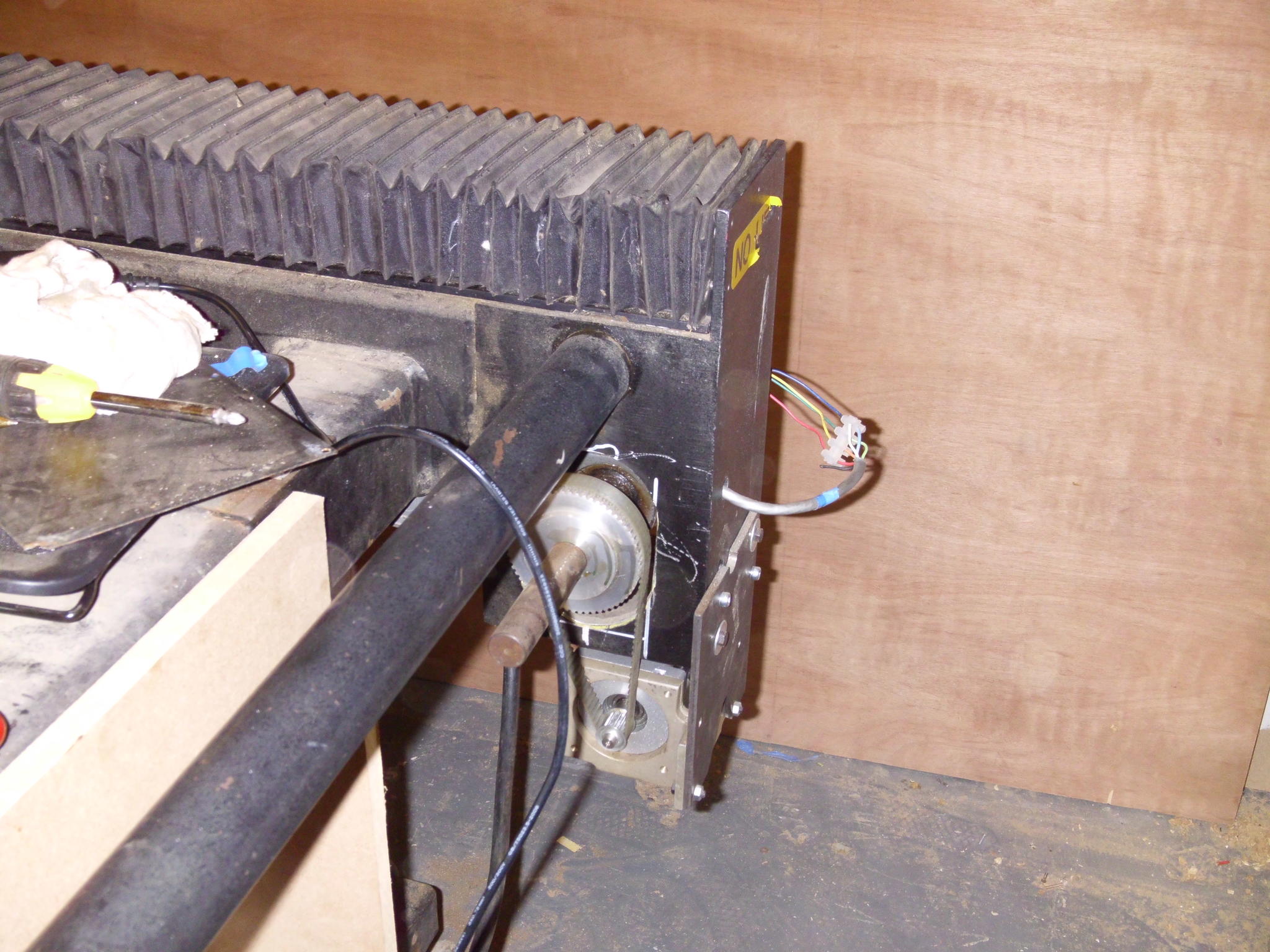 I have recently started to build a cnc using a Gerber system 48 frame. This frame was from ebay and has got its own quirks and has been bastardized from a previous owner. I have bought stepper motors and abreakout board from ebay specifics below. I have the stepper motors on and have setup a box under one side of the cnc machine where everything runs back to.