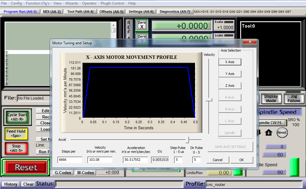 Now your set to tune the velocity and acceleration to higher numbers but don't go to high else you'll get stalling motors.