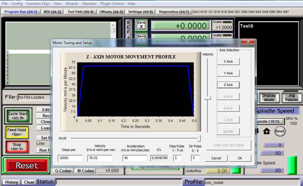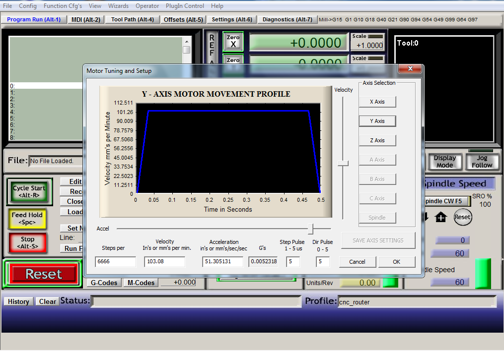 Then check to see if machine moves ok. If stalls then lower velocity.