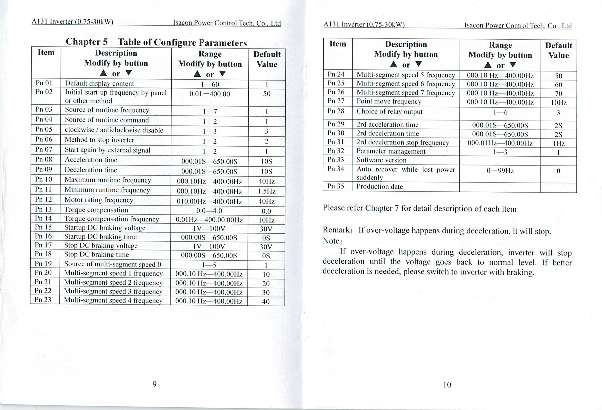 Hi Jazz on wiring I had FWD going to PIN 17 and and D2 JOG going to PIN 14 with 10V IN & GND going to the right hand side of the bob as shown in the linked BOB manual above. I've uploaded the VFD manual. Thanks for your help.