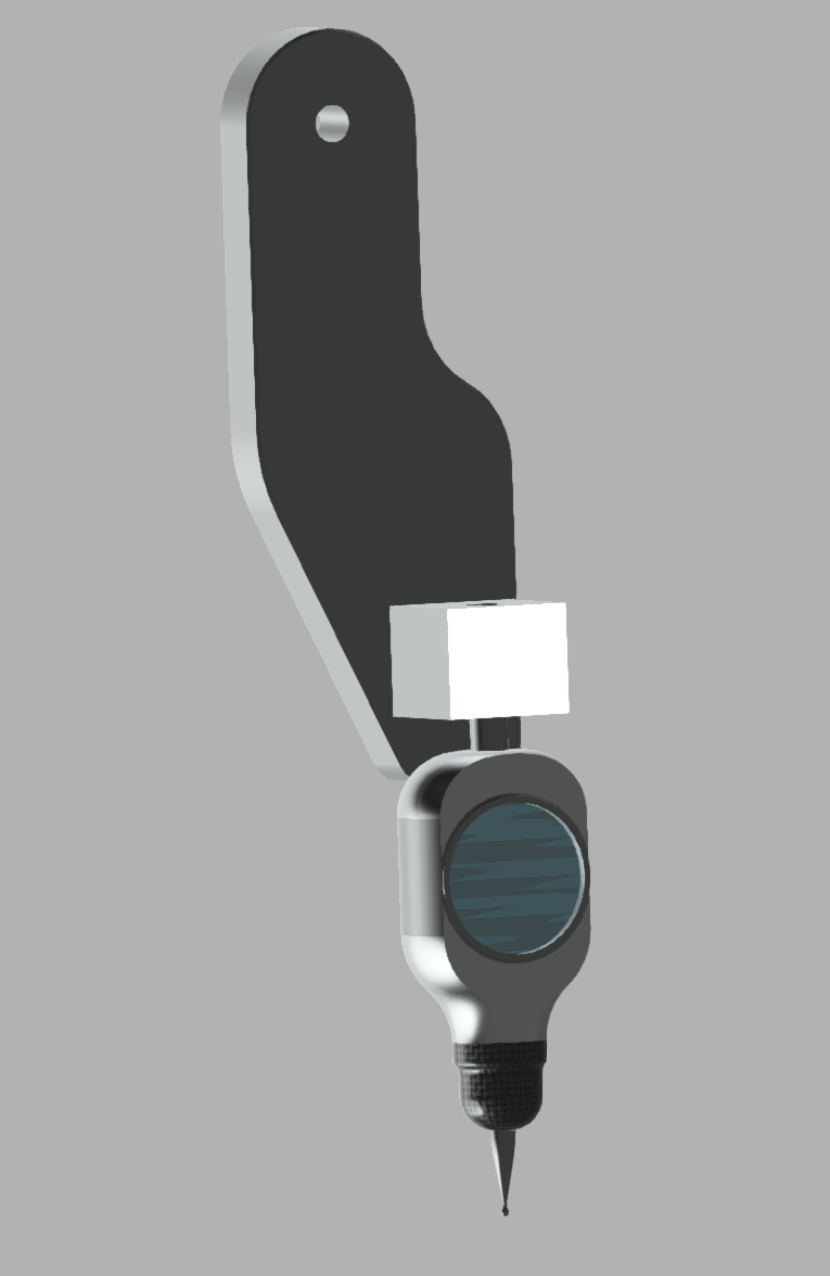 So Ive bit the bullet and bought a 'proper' probe. Its mechanical, not electrical and I want to make an arm for it like the Datron has that comes down, probes and I can then move it back in the 'up' position when not needed. Thinking to use some form of offsets to make this work.