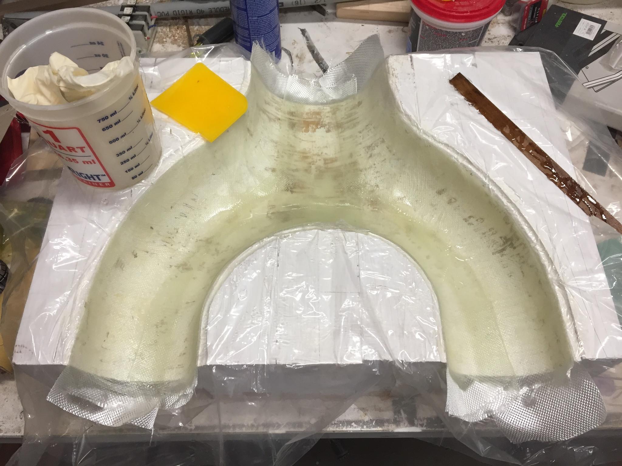 Made some progress on the dust collection adapter first picture is the first half out of the mold and the second is the second half laid up in the mold.