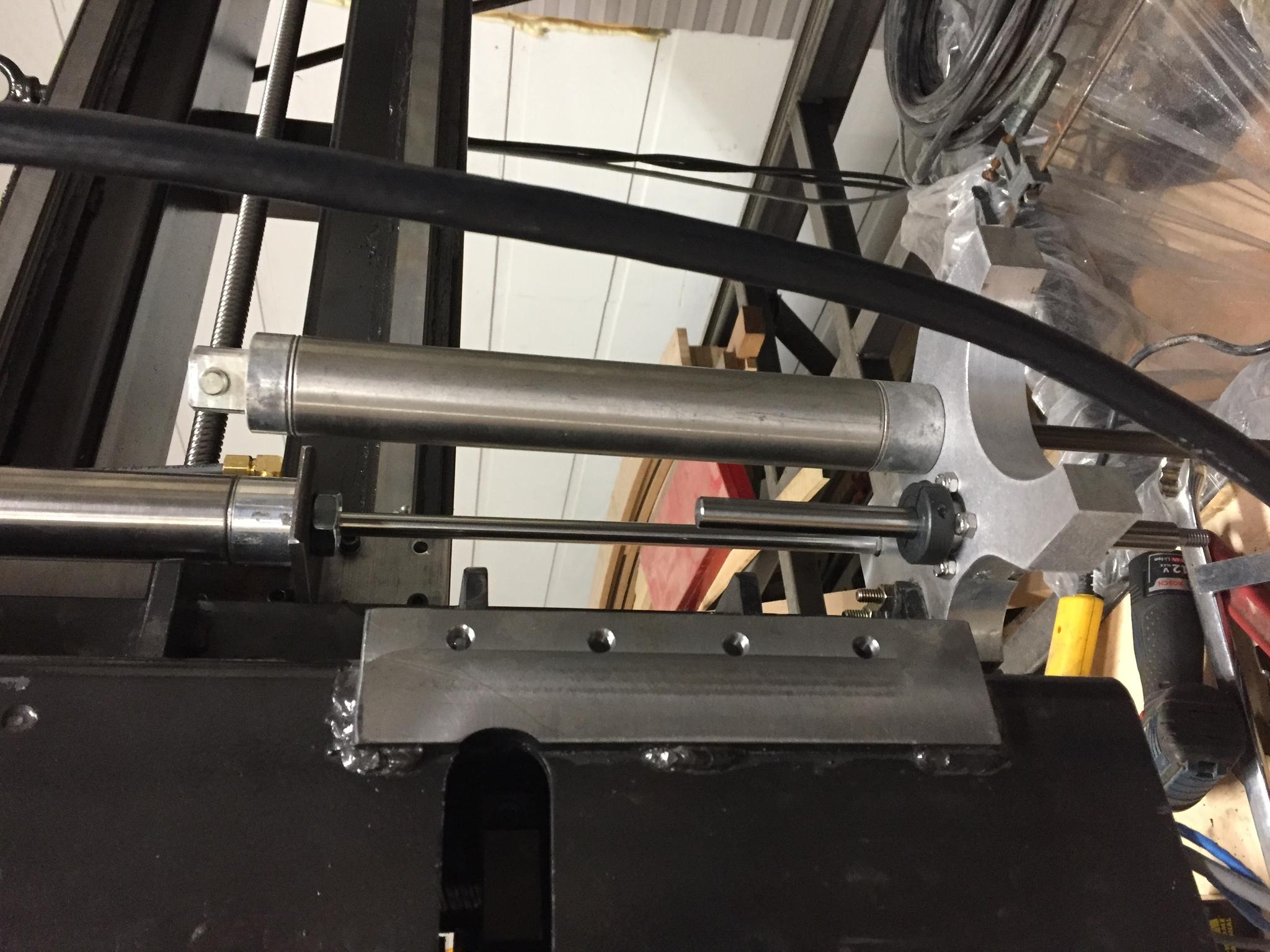 Machining and installing guides for dust shroud, shroud/brush will be on pneumatic cylinders so it can be pulled up when needed and also when I add the tool changer.