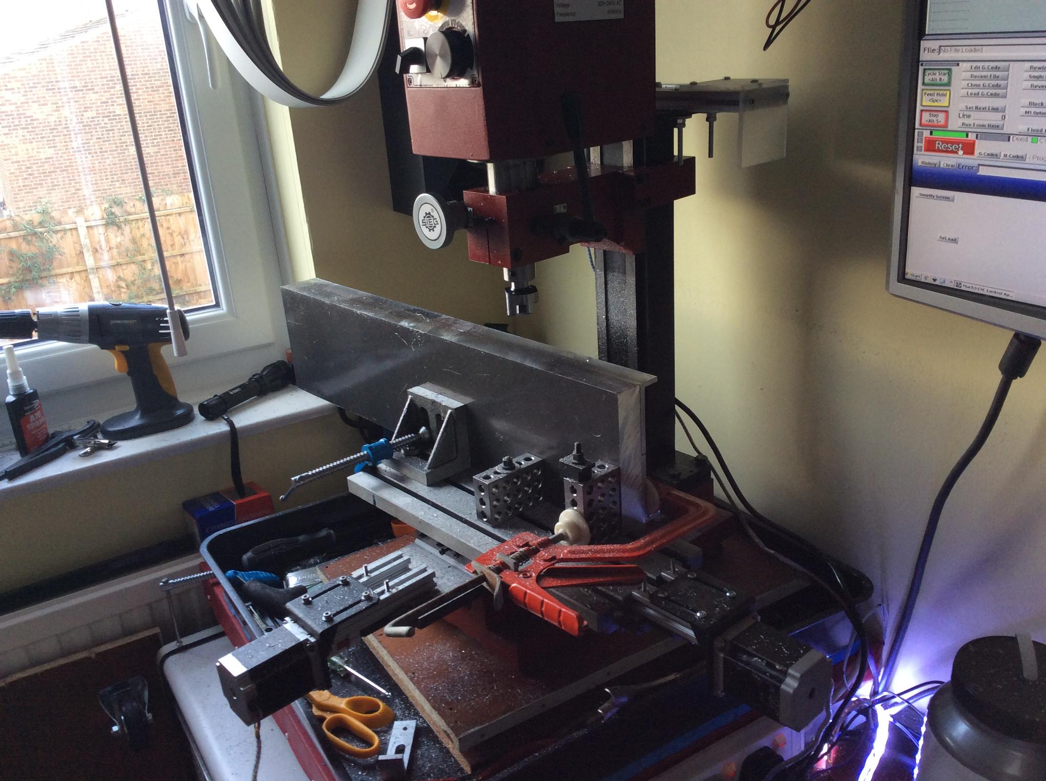 So much for a day off only ended up working till 9pm, had to plug it in a try it when I got back, spindle fine, Z axis fine, Y axis with A slaved no problem, X axis just a rumble and rock from motor, too tired to even think about it tonight can't be too serious it didn't go bang! The two working axis have proved already it has all the speed I will ever be able to use in the flat and then some if it lived in a shed the shed would have been rocking. Would have been nice to have it all work but 4 from 5 is better than a kick up the backside.