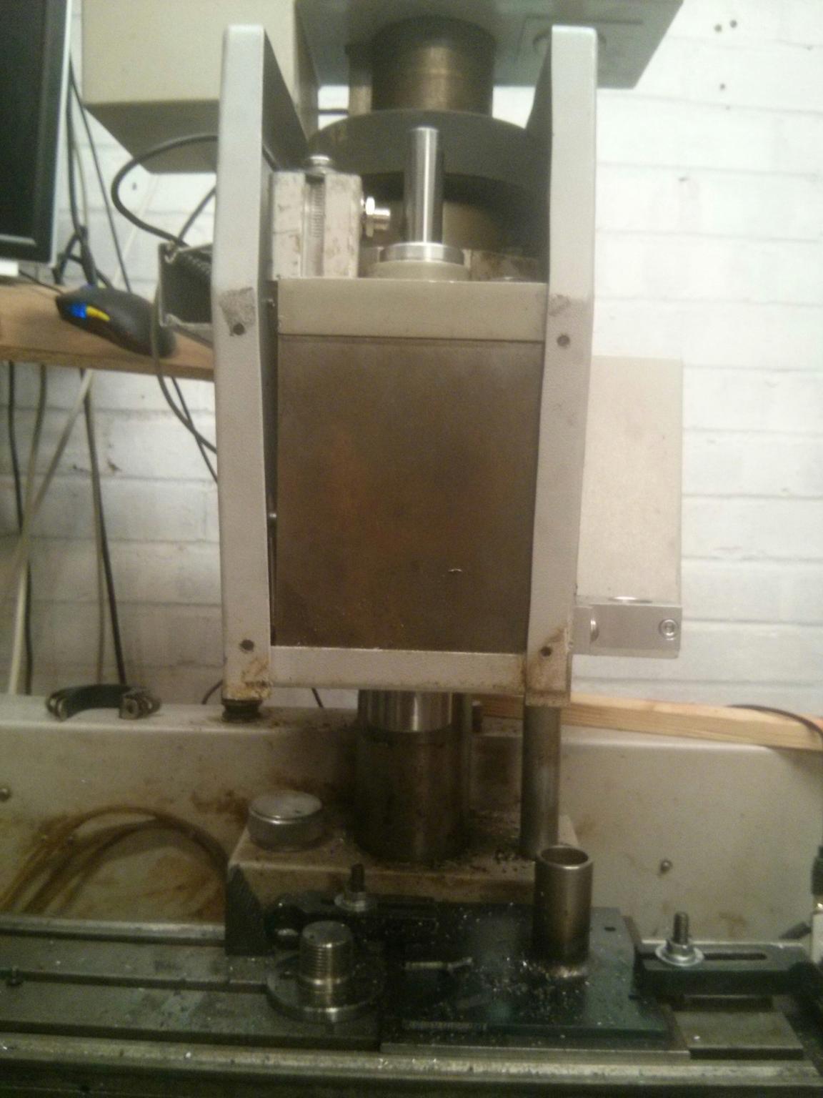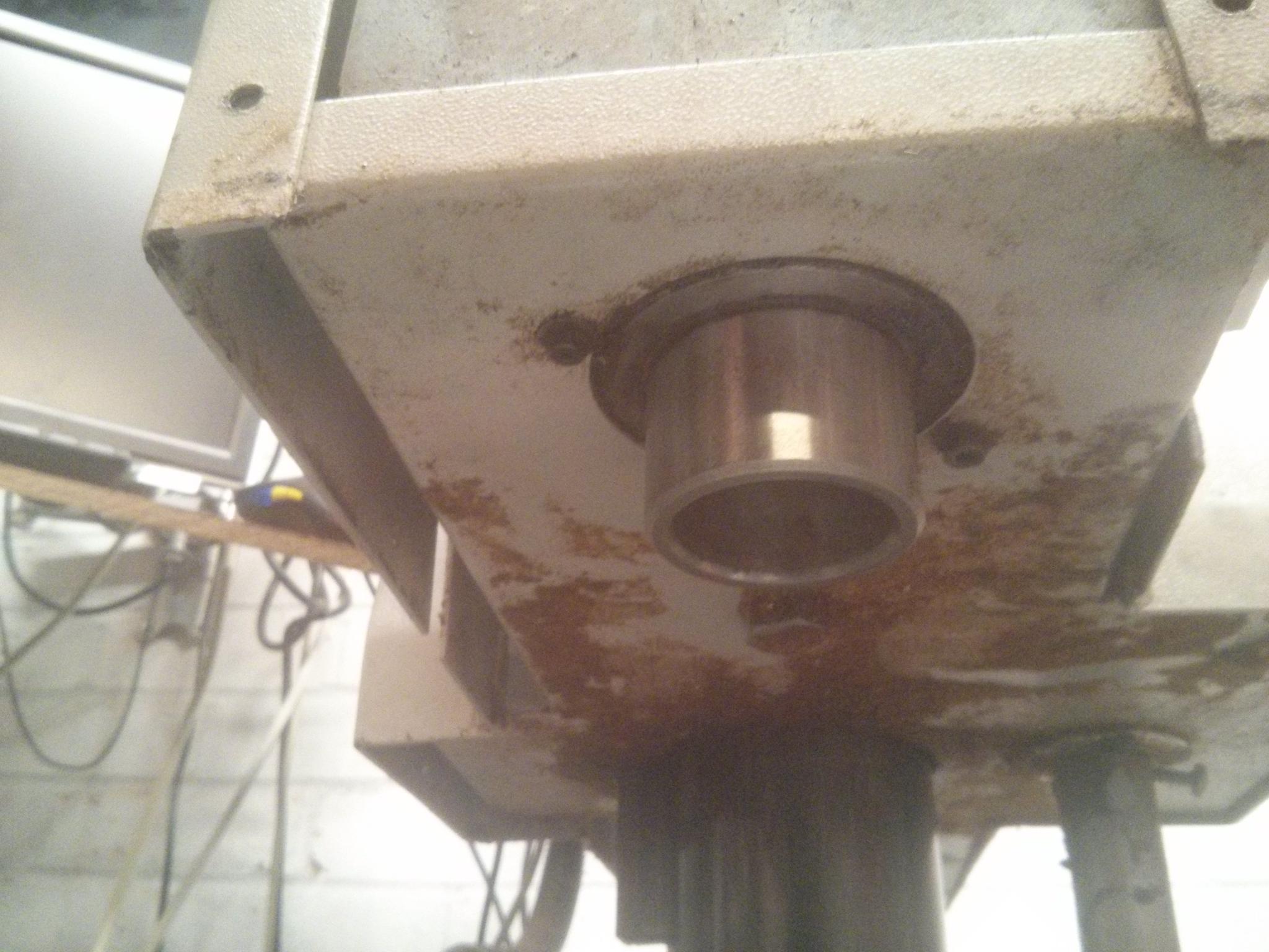 Here you go. The spindle block is enclosed, with all bearings and pulleys concealed. At the top there is only an 18mm diameter shaft protruding. Ignore the bit of aluminium extrusion, it's just a temporary mount for a spindle speed sensor.