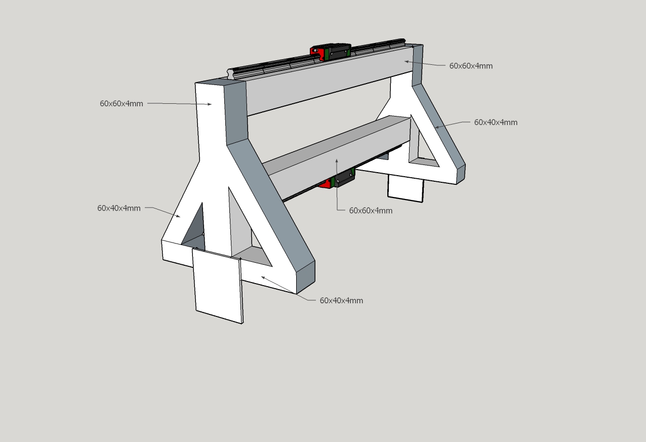 for the gantry , dont have the gantry side like an upside down T as it offsets the spindle too much and the spindle will go quite a bit over the tables surface. using a L shape might be better and reduce the amount you go off the table (unless you want to ofcourse)