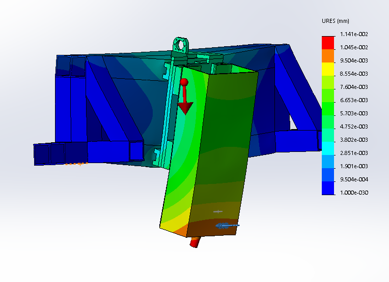 The weak link where the forces in the Y axsis, this was fixed with some side bracing