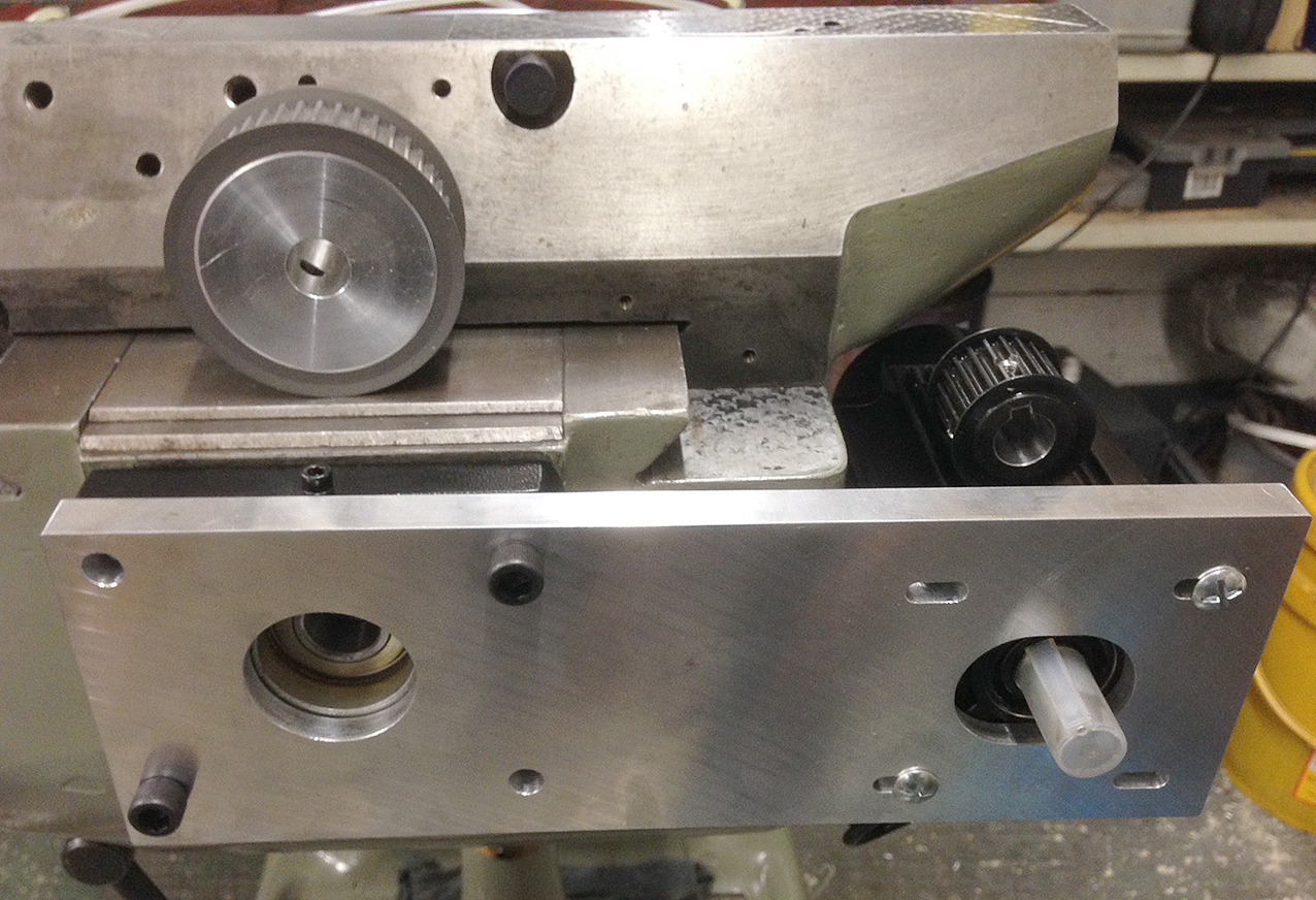 Anyway, done now and fits nicely, also mounted the motor plate using some spacers to pick up on the bottom of the counter-bores at the top face is not flat. Had to make a shim for the bearings to give a bit of pre-load but not bind up. Next job is to turn up a spacer tube for the pulley-to-bearing gap and then fit the belt - one axis finished.