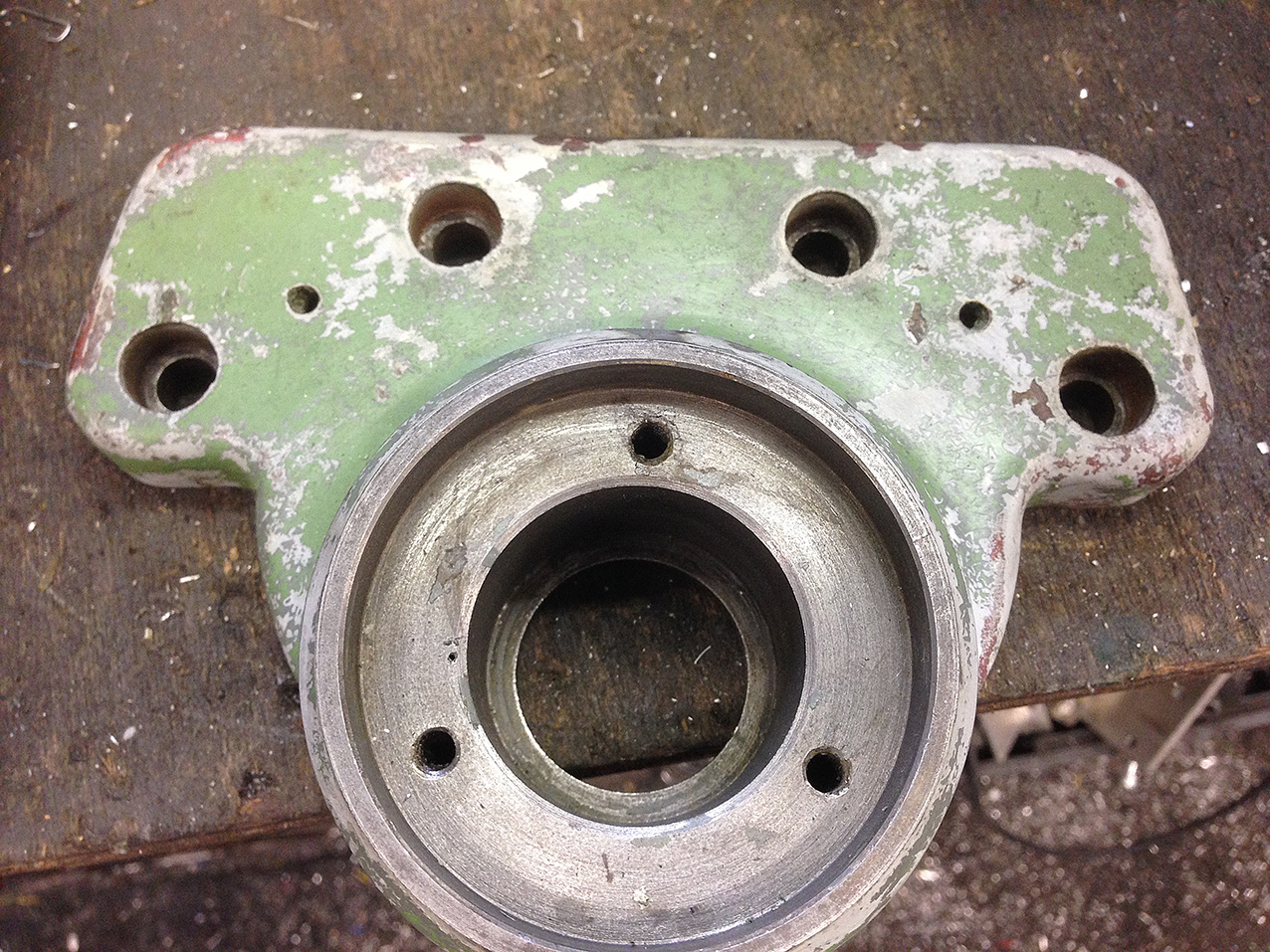 Using the four screws would mean a much larger lump of metal is needed to span the width, I won't be refitting the dials so using the three mount screws probably won't affect anything.