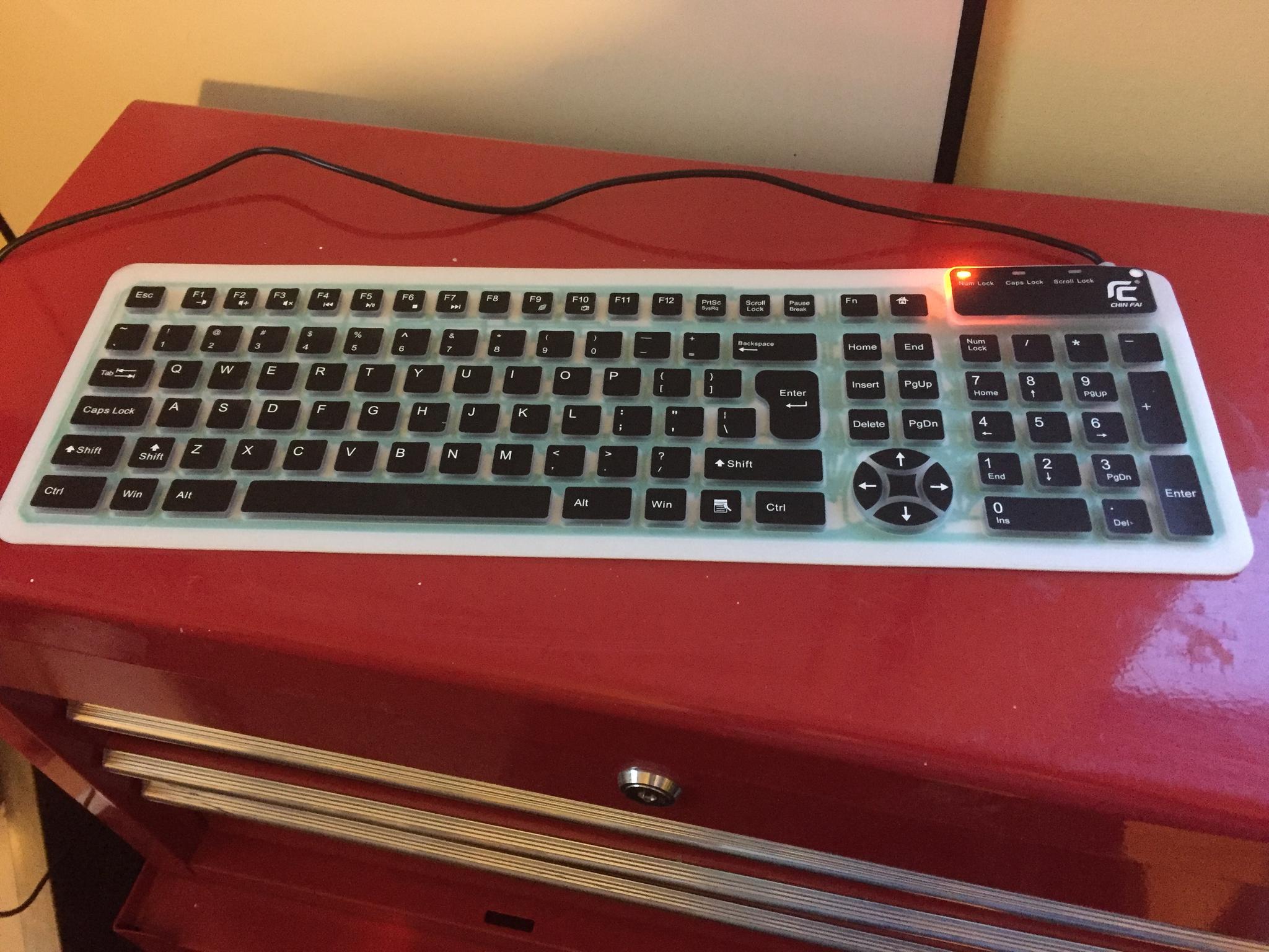 Looks nice. It is a good idea that it is easy to clean, though I don't have such issues so it isn't for me. I am using a wireless, small keyboard (not rubber, like yours) which is easy to move around with, but I don't often need to handle the CNC with that one. I also have a dedicated numeric keypad, which is wired, because wired communication is more reliable than wireless. I would hate if the keyboard would for any reason lose contact with the PC at any critical moment or would not react exactly when I wanted it to react.