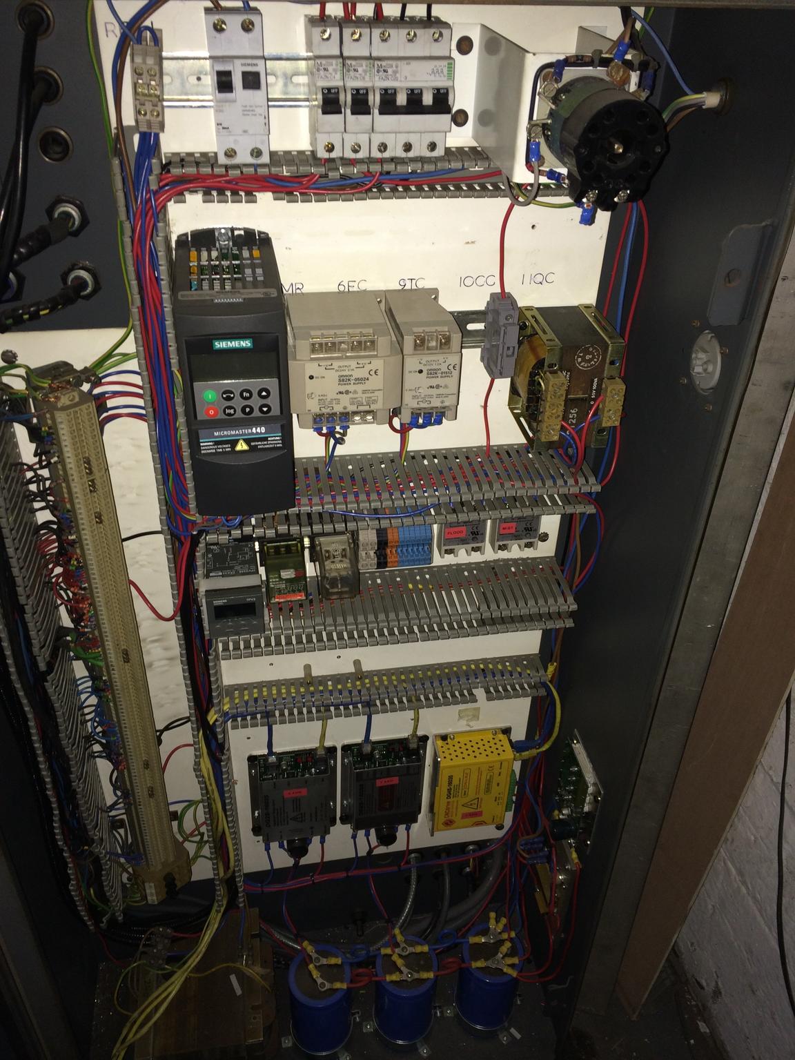 The machine was originally a series 1 MDI, but the original control has been taken out and replaced with new kit. New parts installed are as follows: Siemens 440 micromaster vfd, 3 x cncdrive dc servo drives, 3 x new servo encoders, Omron auxiliary dc power supplies, custom built power supply for servos, solid state relays, custom operator panel with mpg etc.