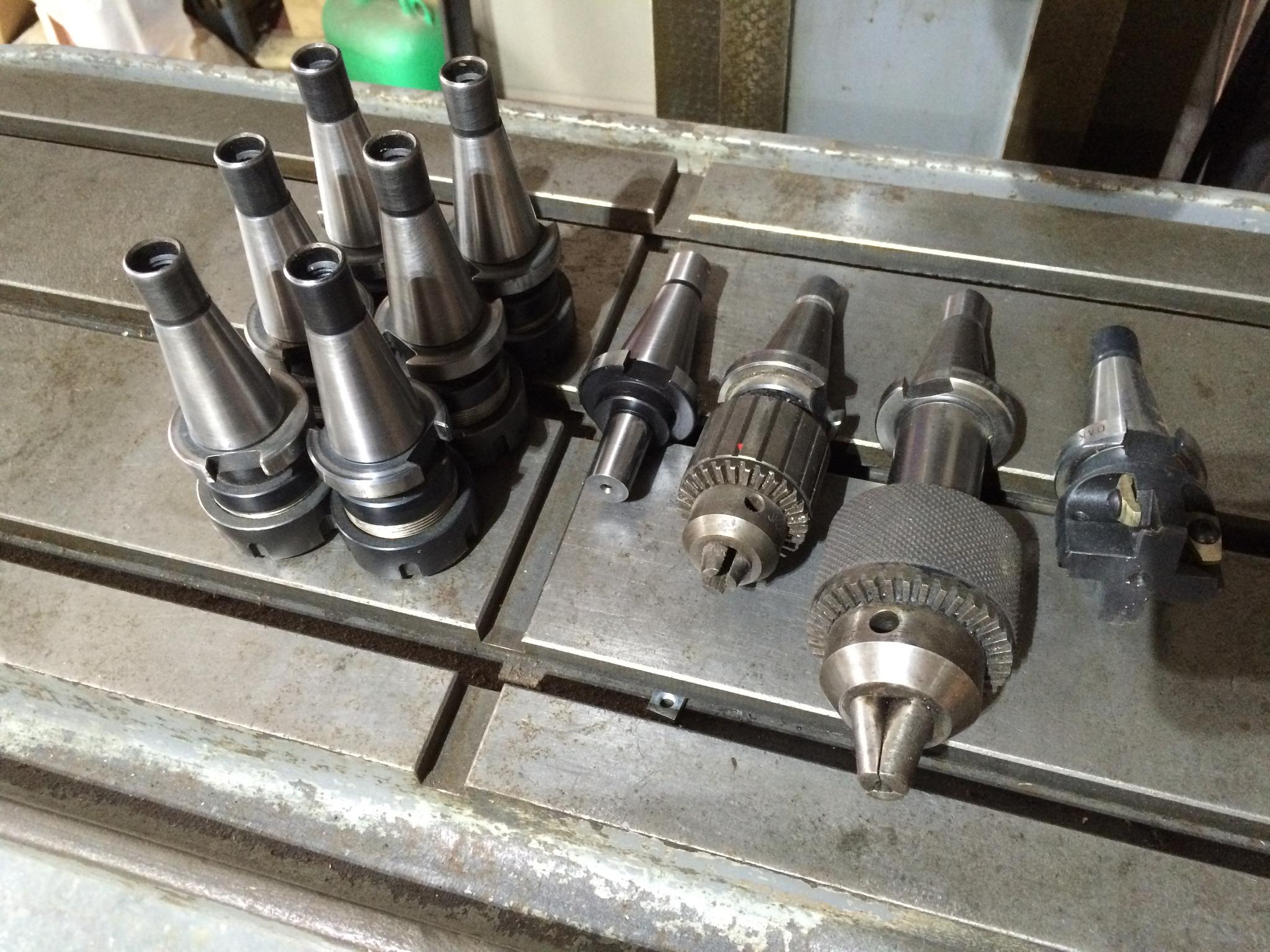 The Bridgeport is in really great condition, mechanically and aesthetically. All that needs doing really is a control board, mach3 or otherwise installing, some of the wiring is complete, there isn't anything complicated anyway. I have the original wiring schematic with cable numbers etc, which is a great help. The machine is equipped with both flood and spray mist coolant, variable speed head by means of an expanding pulley assembly, high and low range speeds, spindle brake. There is some tooling to go with the machine too, see pics.